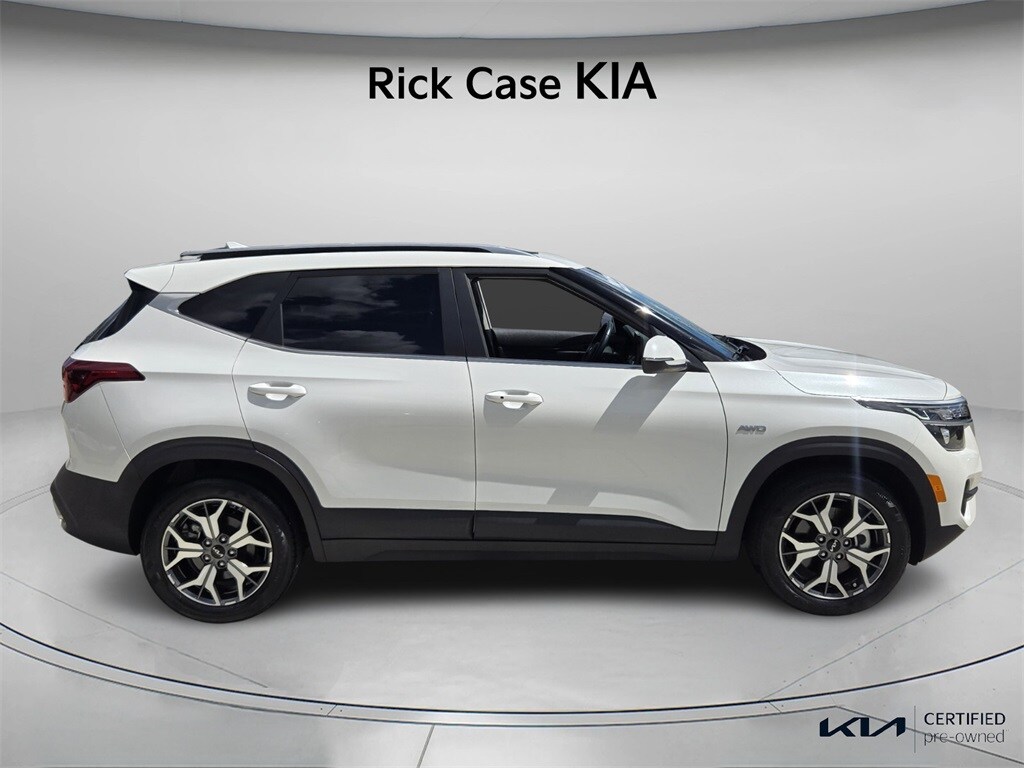 Recent Arrival! Priced below KBB Fair Purchase Price! Carfax One-Owner. Clean Carfax. 150 Point Inspection, Bluetooth, iPod Connector, Kia Certified, back up camera, unlimited car wash, Rick Case Rewards, 4-wheel disc brakes, Apple CarPlay & Android Auto, emergency communication system: 911 Connect, exterior parking camera rear, front anti-roll bar, front reading lights, leather shift knob, low tire pressure warning, navigation system, occupant sensing airbag, overhead airbag, power driver seat, power moonroof, power steering, power windows, radio: AM/FM/MP3 display audio w/navigation, remote keyless entry, steering wheel mounted audio controls, wheels: 17" alloy w/machined finish. Certified. Snow White Pearl 2022 Kia Seltos EX AWD CVT 2.0L I4 MPI. Odometer is 43095 miles below market average! 27/31 City/Highway MPG. Thank you for shopping at Rick Case Kia. We want to help you become a member of the Rick Case Kia Family. As a Rick Case Kia Family member, you receive a free Rick Case Rewards Card that gets you discounted gas. You will also receive discounted service and free car washes.