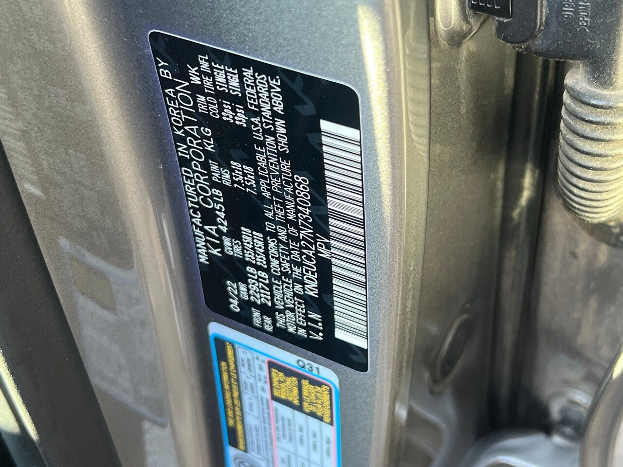VIN: KNDEUCA27N7340868