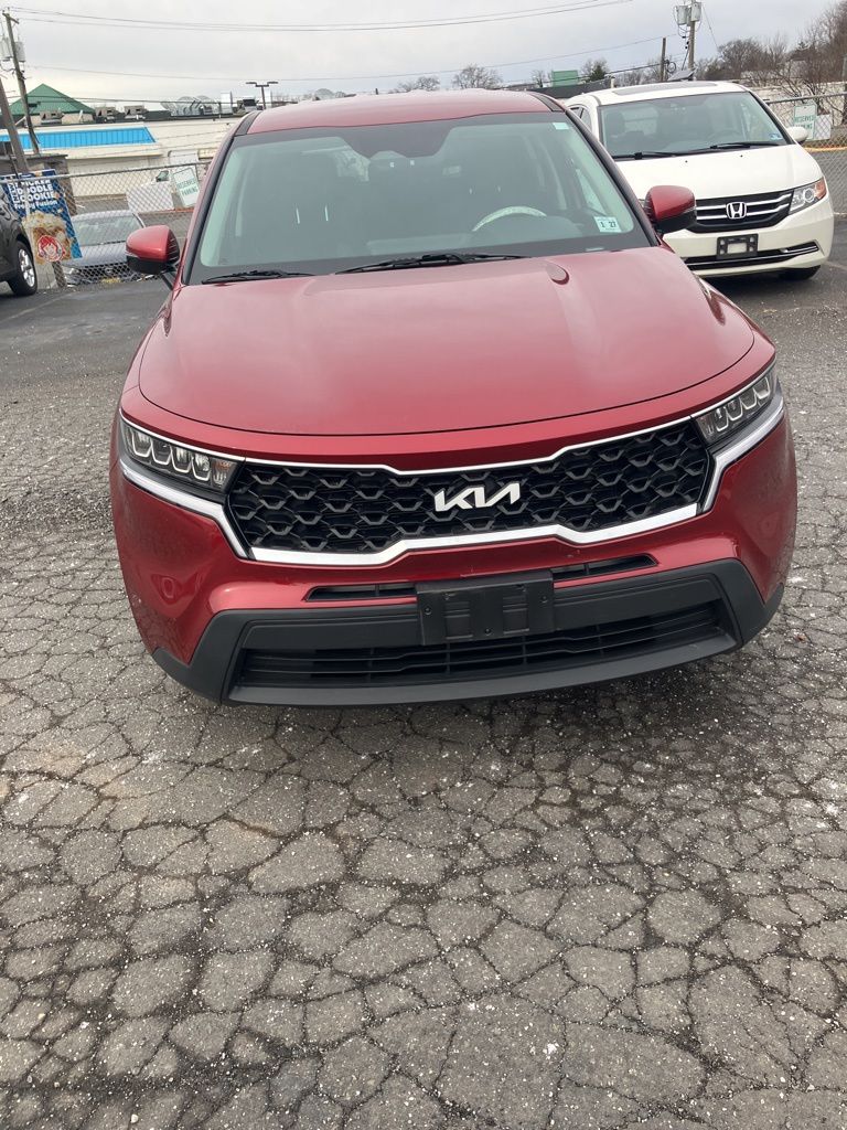 2022 Kia Sorento LX Passion Red Tintcoat FWD 8-Speed Automatic 2.5L I4 DGI DOHC 16V LEV3-ULEV70 191hp. Kia Certified Pre-Owned Certified, 4D Sport Utility, 2.5L I4 DGI DOHC 16V LEV3-ULEV70 191hp, 8-Speed Automatic, FWD, Passion Red Tintcoat, Black Cloth, 3.798 Axle Ratio, 3rd row seats: split-bench, 4-Wheel Disc Brakes, 6 Speakers, 7.0J x 17" Alloy Wheels, ABS brakes, Air Conditioning, Alloy wheels, AM/FM radio, Apple CarPlay & Android Auto, Auto High-beam Headlights, Brake assist, Bumpers: body-color, Carpeted Floor Mats, Cloth Seat Trim, Delay-off headlights, Driver door bin, Driver vanity mirror, Dual front impact airbags, Dual front side impact airbags, Electronic Stability Control, Exterior Parking Camera Rear, Four wheel independent suspension, Front anti-roll bar, Front Bucket Seats, Front Center Armrest, Front reading lights, Fully automatic headlights, Heated door mirrors, Illuminated entry, Knee airbag, Low tire pressure warning, Occupant sensing airbag, Outside temperature display, Overhead airbag, Overhead console, Panic alarm, Passenger door bin, Passenger vanity mirror, Power door mirrors, Power steering, Power windows, Radio data system, Radio: AM/FM Audio System, Rear anti-roll bar, Rear reading lights, Rear seat center armrest, Rear window defroster, Rear window wiper, Remote keyless entry, Remote Start Key, Security system, Speed control, Speed-sensing steering, Split folding rear seat, Spoiler, Steering wheel mounted audio controls, Tachometer, Telescoping steering wheel, Tilt steering wheel, Traction control, Trip computer, Turn signal indicator mirrors, Variably intermittent wipers.