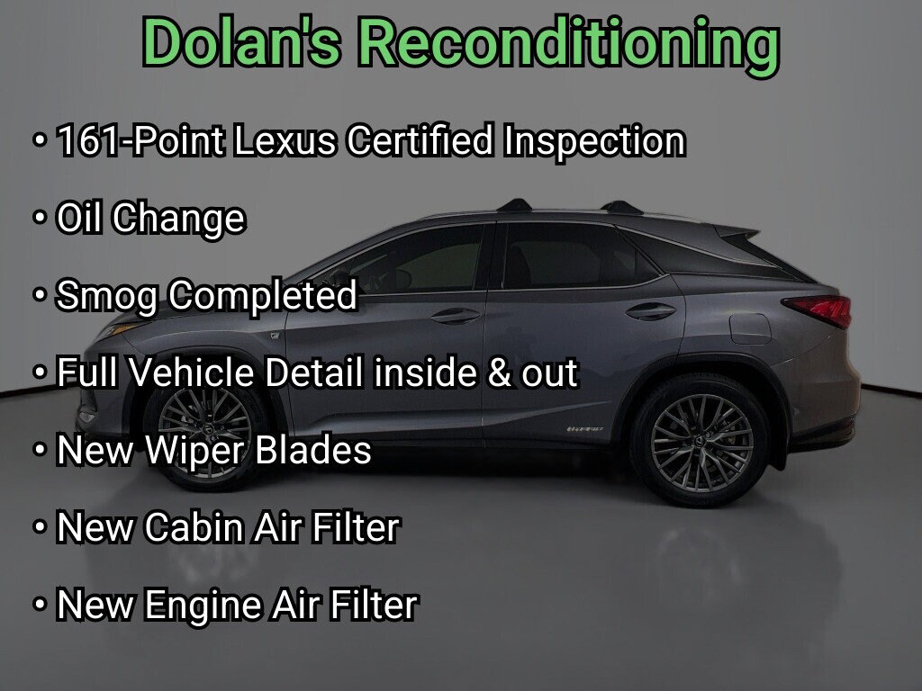 2022 Lexus RX 450h F Sport Certified. This vehicle is brought to you by Dolan Lexus located in Reno, Nevada and is available for immediate delivery. At Dolan Auto Group, we understand that you don't want to be pressured when buying a car. That's why we decided to take a different approach and pay our product specialists a salary, not a commission. Having Non-commissioned Product Specialists allows our team to focus on what's important - helping you find the right vehicle for your journey.