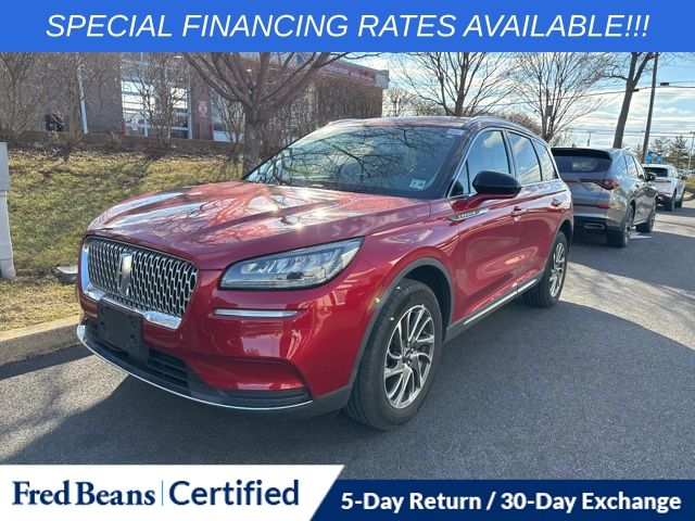 This 2022 Lincoln Corsair Standard AWD is a one-owner, factory-certified SUV finished in Red Carpet Metallic with a strong service history and over 11,000 miles below market average. Powered by a 2.0L four-cylinder engine and 8-speed automatic transmission, it offers a smooth, confident drive and the remainder of the factory warranty for added peace of mind. As a Lincoln Certified Pre-Owned vehicle, it has passed a 200-point inspection and includes a 72-month/100,000-mile limited warranty from the original in-service date, roadside assistance, rental and trip interruption reimbursement, and a transferable warranty. Every Fred Beans vehicle also receives a 127-point inspection and includes a 5-day return and 30-day exchange policy (AS-IS vehicles excluded), along with added value through our Auto Rewards Program.