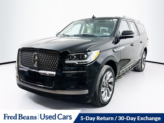 Recent Arrival! This 2022 Lincoln Navigator L Reserve 4WD is finished in Infinite Black Metallic Clearcoat and represents the pinnacle of full-size luxury SUV design, capability, and refinement. Powered by a responsive V6 paired with a smooth 10-speed automatic transmission, this long-wheelbase Navigator L delivers commanding performance, exceptional passenger comfort, and expansive cargo capacity. It carries the remainder of the factory warranty, is Factory Certified, and includes a 5-day return and 30-day exchange for added confidence. Equipped with the Reserve I package (Equipment Group 201A), this Navigator offers a premium interior experience highlighted by 30-way Perfect Position front seats with Active Motion, heated and ventilated front and rear seats, a heated steering wheel, and illuminated first- and second-row seat belts. Ambient interior lighting, premium leather seating surfaces, and a panoramic Vista Roof further elevate the cabin, making it ideal for both long-distance travel and everyday driving. Advanced technology is front and center, featuring a head-up display, connected navigation with a three-year trial, wireless Apple CarPlay and Android Auto, wireless charging, and the Revel Ultima 3D audio system with 28 speakers. Driver assistance and safety technologies include adaptive cruise control, lane assist, blind spot monitoring with rear traffic alert, a 360-degree camera, and front and rear parking sensors. Adaptive LED headlamps, auto high-beam headlights, power-folding exterior mirrors, illuminated power-deploying running boards, and 22-inch bright-machined aluminum wheels complete the sophisticated exterior presentation. This Navigator L is a CARFAX One-Owner vehicle with a clean CARFAX and odometer reading 5,574 miles below market average. It is Lincoln Signature Certified, which includes a 200-point inspection, roadside assistance, transferable coverage, a limited warranty of 72 months or 100,000 miles from the original in-service date, rental and trip interruption reimbursement, and 20,000 Lincoln Access Rewards points, with a $100 deductible. As with all Fred Beans vehicles, it has completed a comprehensive 127-point inspection and qualifies for our exclusive Auto Rewards Program. Benefits include a $50 service gift certificate, free Pennsylvania state safety inspections, discounts with local merchants, and the opportunity to earn up to $2,000 toward your next vehicle simply by servicing with Fred Beans. As Fred Beans always says, our used cars are better because our reputation depends on it.