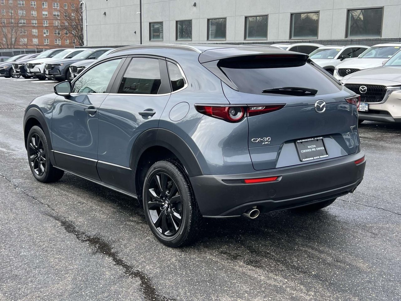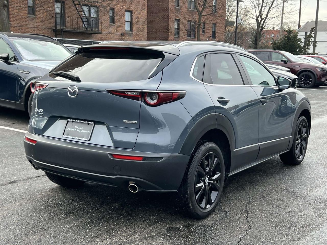 Polymetal Gray Metallic 2022 Mazda CX-30 2.5 S Carbon Edition Clean Autocheck, rear view camera, 1 owner, leather, Apple Car Play, Mazda Certified, sunroof, blind spot, lane departure, 2 sets of keys, CX-30 2.5 S Carbon Edition, 4D Sport Utility, SKYACTIV 2.5L 4-Cylinder DOHC 16V, 6-Speed Automatic, AWD, Polymetal Gray Metallic, Red Leather. Mazda Certified Pre-Owned Details: Roadside Assistance, Limited Warranty: 12 Month/12,000 Mile (whichever comes first) after new car warranty expires or from certified purchase date, 160 Point Inspection, Vehicle History, Warranty Deductible: $0, Includes Autocheck Vehicle History Report with 3 Year Buyback Protection. 3 month SiriusXM trial subscription. Transferable Warranty, Powertrain Limited Warranty: 84 Month/100,000 Mile (whichever comes first) from original in-service date. While every effort is made to verify the accuracy of online prices, we are not responsible for typographical data errors or price changes! Trade offers vary based on condition, miles, and original purchase date. All prices are with financing through our primary lenders with Tier 1 credit. No two offers can be combined. All internet prices include any and all e-coupon offers which should be presented at time of sale. All prices exclude tax, tags, doc fee, admin fees, NYS inspection. All prices posted are reflective of the amount financed with a $1995 down payment. Other restrictions may apply. See dealer for full details or visit our website at: www.gcmazda.com.