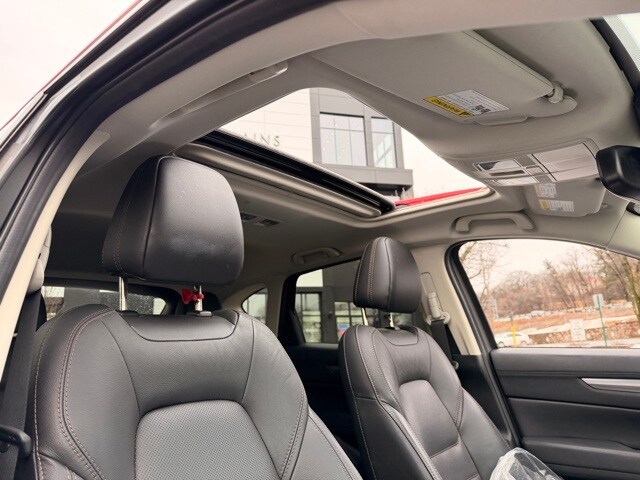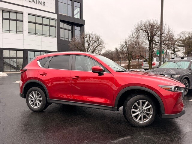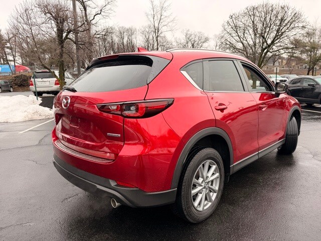 Certified by Volvo 2022 Mazda CX-5 2.5 S Preferred Package SUV. Located at Mazda White Plains. This vehicle features a Soul Red Crystal Metallic exterior and a black interior. It is equipped with a 6-speed automatic transmission and all-wheel drive. The CX-5 offers a comfortable and quiet ride, excellent fuel economy, and a suite of safety features. Its naturally aspirated engine and manual-shift auto transmission are reliable and responsive, making it a superior choice in its class.