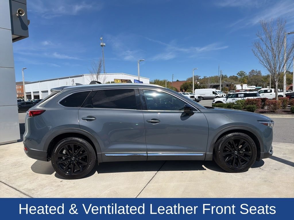 Striking style and upscale comfort define this 2022 Mazda CX-9 Carbon Edition, VIN JM3TCBDYXN0626539, with 67,980 miles. Known for its distinctive design and refined driving experience, the Carbon Edition brings together bold blacked-out styling with a well-equipped three-row interior. Inside, the cabin offers impressive comfort with heated and cooled leather front seats, a heated steering wheel with paddle shifters, and heated second-row captain’s chairs that give passengers added space and comfort. A third-row bench seat expands seating capacity, making this SUV ready for family trips or daily commuting. Convenience features include wireless device charging to keep your phone powered without cables and a hands-free liftgate that makes loading cargo easier when your hands are full. A moonroof adds natural light to the cabin, enhancing the open and upscale feel of the interior. The Carbon Edition stands out with bold exterior details including a gloss black grille, 20-inch black wheels, and black auto-folding mirrors that create a sleek, athletic look. Adaptive LED headlamps provide crisp nighttime visibility while adding a modern touch to the front design. With premium seating, distinctive styling, and practical three-row versatility, this CX-9 Carbon Edition delivers a refined SUV experience designed for both everyday driving and longer journeys.