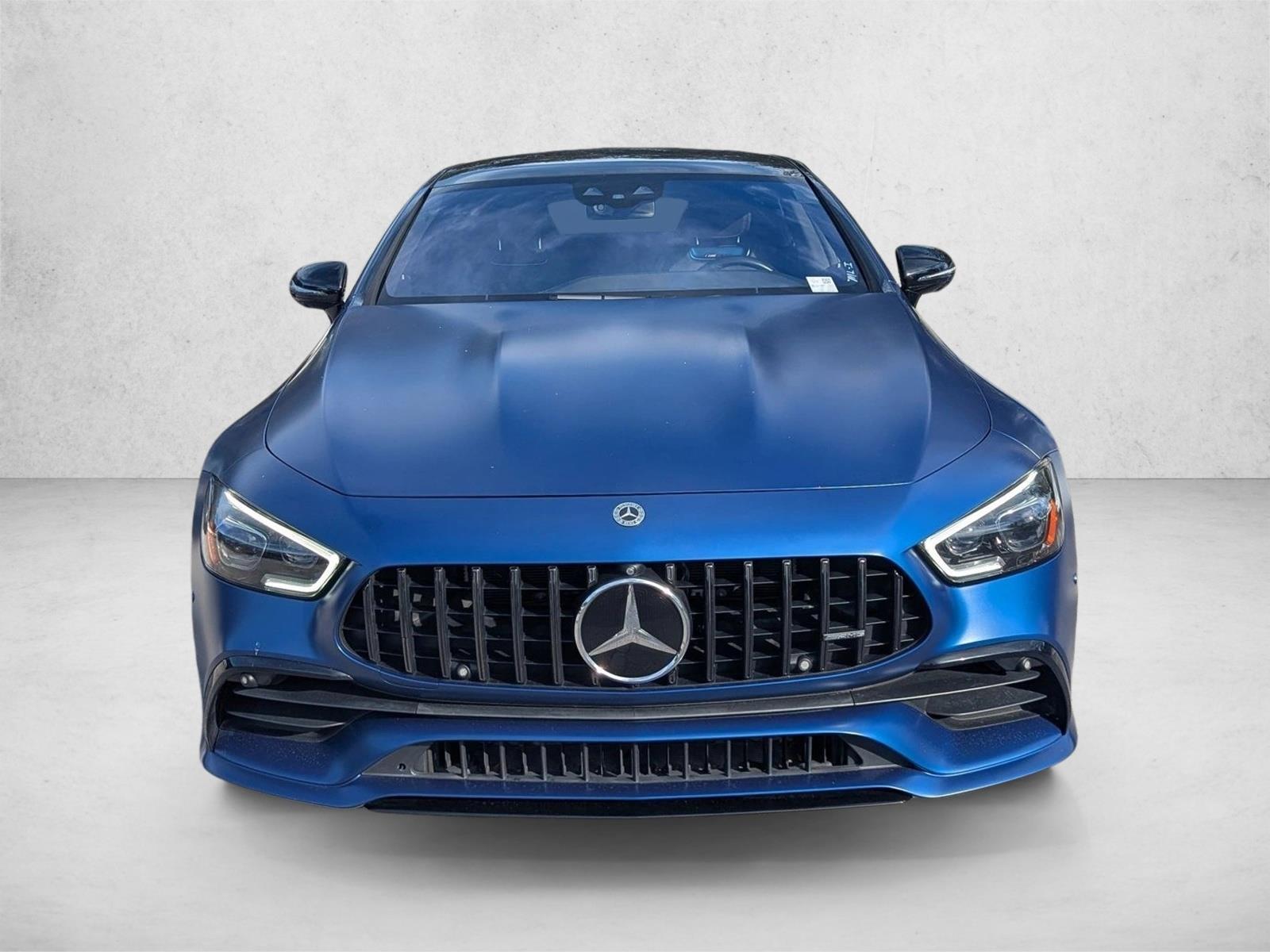 This outstanding example of a 2022 Mercedes-Benz AMG GT AMG GT 43 is offered by Mercedes-Benz of Delray. This Mercedes-Benz includes: Red brake calipers, AMG Night Package, Acoustic Comfort Package, black Nappa leather upholstery, leather seats, fixed panorama roof, generic sun/moonroof, dual moonroof, AMG performance exhaust system, soft-close doors, warmth & comfort package, heated steering wheel, heated front seats, 115V socket, natural grain Gray Ash wood trim, woodgrain interior trim, wheels: 10" x 21" Fr/11.5" x 21" Rr Cross-Spk Blk, MANUFAKTUR Starling Blue Magno, AMG Light Display, extended night package, driver assistance package. This is a Certified Pre-owned vehicle, so you can feel rest assured that it has been meticulously inspected from top to bottom. Outstanding craftsmanship and artisanal refinements abound with this Mercedes-Benz AMG GT AMG GT 43. You'll love the feel of AWD in this 2022 Mercedes-Benz AMG GT. It provides a perfect balance of handling power and control in virtually every driving condition. Low, low mileage coupled with an exacting maintenance program make this vehicle a rare find. Added comfort with contemporary style is the leather interior to heighten the quality and craftsmanship for the Mercedes-Benz AMG GT AMG GT 43. With an efficient and easy to use navigation system, this Mercedes-Benz AMG GT will help get you from Point A to Point B in no time flat.