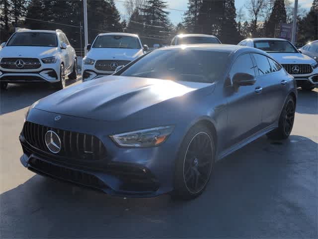 Mercedes-Benz of Beaverton is proud to present this stunning 2022 Mercedes-Benz AMG® GT 53 as part of our hand-selected pre-owned lineup. Our trained technicians have completed a thorough multi-point safety and mechanical inspection. This gorgeous example is finished in the MANUFAKTUR Starling Blue Magno exterior paint and Red Pepper/Black interior. Other dealer added factory options include: Extended Night Package (Dark Tinted Grille, Exterior Elements in Black, and Exterior Lettering in Black) Odometer is 12707 miles below market average! Professionally detailed interior/exterior, market based pricing - Our List Price is our BEST Price, safety and mechanical inspection performed by certified technician, Dark Tinted Grille, Extended Night Package, Exterior Elements in Black, Exterior Lettering in Black. Certified. 2022 Mercedes-Benz AMG® GT 53 4MATIC® 9-Speed Automatic I6 Clean CARFAX. Mercedes-Benz Certified Pre-Owned Details: Includes Trip Interruption Reimbursement and 7 days/500 miles Exchange Privilege, 165+ Point Inspection, Transferable Warranty, Roadside Assistance, Vehicle History.