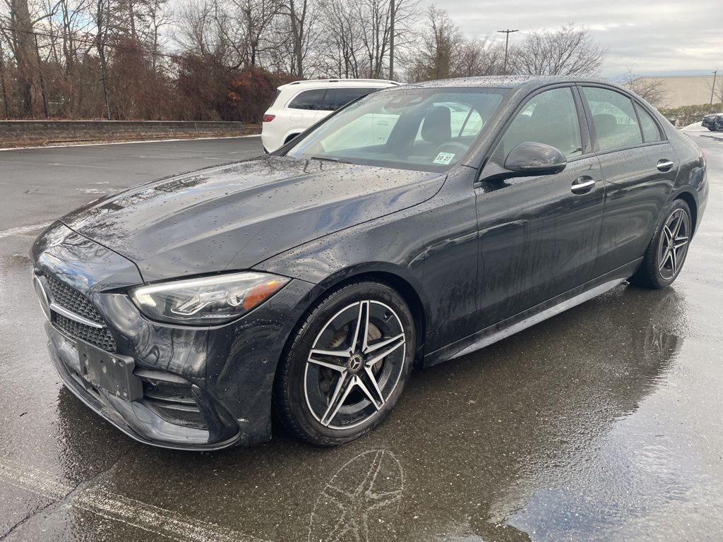 2022 Mercedes-Benz C-Class C 300 4MATIC Black 4MATIC 9-Speed Automatic 2.0L I4 Turbocharged. Mercedes-Benz Certified Pre-Owned Certified, 4MATIC, 11.9" Center Touchscreen Display, 18" 5-Spoke Wheels, 4-way Power Driver's Lumbar Support, 4-Wheel Disc Brakes, 5 Speakers, ABS brakes, Air Conditioning, Alloy wheels, AM/FM radio, Anti-whiplash front head restraints, Apple CarPlay/Android Auto, Auto High-beam Headlights, Auto tilt-away steering wheel, Auto-dimming door mirrors, Auto-dimming Rear-View mirror, Automatic temperature control, Brake assist, Bumpers: body-color, Child-Seat-Sensing Airbag, Compass, Delay-off headlights, Driver door bin, Driver vanity mirror, Dual front impact airbags, Dual front side impact airbags, Electronic Stability Control, Emergency communication system: Mercedes-Benz Emergency Call Service, Exterior Parking Camera Rear, Four wheel independent suspension, Front anti-roll bar, Front Bucket Seats, Front Center Armrest, Front dual zone A/C, Front reading lights, Fully automatic headlights, Garage door transmitter: HomeLink, Genuine wood dashboard insert, Head restraints memory, Heated door mirrors, Heated front seats, Illuminated entry, Knee airbag, Low tire pressure warning, MB-Tex Upholstery, Memory seat, Occupant sensing airbag, Outside temperature display, Overhead airbag, Overhead console, Panic alarm, Passenger door bin, Passenger vanity mirror, Power adjustable front head restraints, Power door mirrors, Power driver seat, Power Heated Front Seats w/Memory, Power moonroof, Power passenger seat, Power steering, Power windows, Premium audio system: MBUX, Premium Trim Package, Radio data system, Radio: FrontBass 5-Speaker Audio System, Rain sensing wipers, Rear anti-roll bar, Rear fog lights, Rear reading lights, Rear seat center armrest, Rear window defroster, Remote keyless entry, Security system, Speed control, Speed-sensing steering, Split folding rear seat, Steering wheel memory, Steering wheel mounted audio controls, Tachometer, Telescoping steering wheel, Tilt steering wheel, Traction control, Trip computer, Turn signal indicator mirrors, Variably intermittent wipers, Weather band radio.