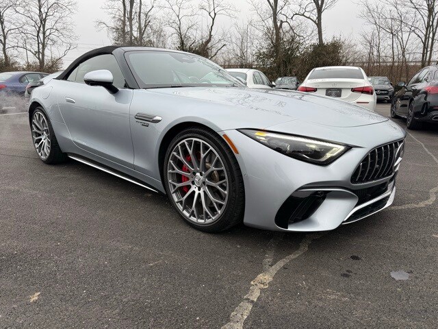 Experience open-air performance at its finest with this Certified Pre-Owned 2022 Mercedes-Benz AMG SL 55 4MATIC, featuring 14,144 miles and an exceptional blend of handcrafted luxury and race-bred engineering. Finished in Cirrus Silver Metallic over Black Nappa Leather, this iconic roadster makes a bold statement from every angle. Under the hood, the AMG SL 55 is powered by a handcrafted bi-turbo V8 paired with AMG Performance 4MATIC all-wheel drive, delivering exhilarating acceleration, confident handling, and refined drivability. The Touring Line enhances everyday comfort while preserving the unmistakable AMG character. As a Mercedes-Benz Certified Pre-Owned vehicle, this AMG SL 55 has undergone a comprehensive inspection and includes factory-backed warranty coverage, offering peace of mind without sacrificing performance. Combining timeless design, cutting-edge technology, and thrilling AMG power, this low-mileage SL 55 represents a rare opportunity to own one of Mercedes-Benzs most celebrated performance roadsters.