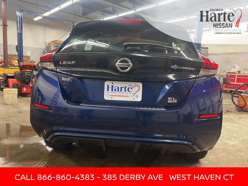 2022 Nissan Leaf SL Plus Harte Certified Plus. George Harte Nissan is a trusted, family-run Connecticut dealership known for honesty, transparency, and top-tier customer care. With hundreds of 5-star Google reviews, customers consistently praise our friendly team, no-pressure buying process, and long-standing reputation. When you buy from us, you become part of the Harte family and we stand behind every vehicle we sell. The 2022 Nissan Leaf SL Plus offers fully electric driving with outstanding efficiency, smooth acceleration, and long-term savings. With premium comfort, technology, and a quiet ride, this Leaf is perfect for drivers looking to go electric without sacrificing convenience or features.