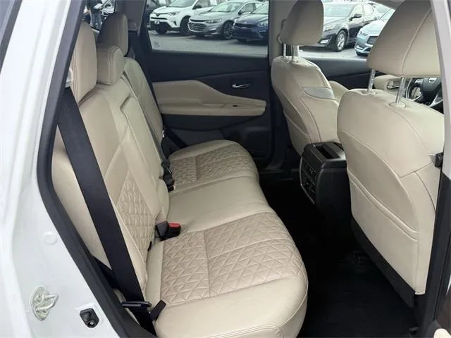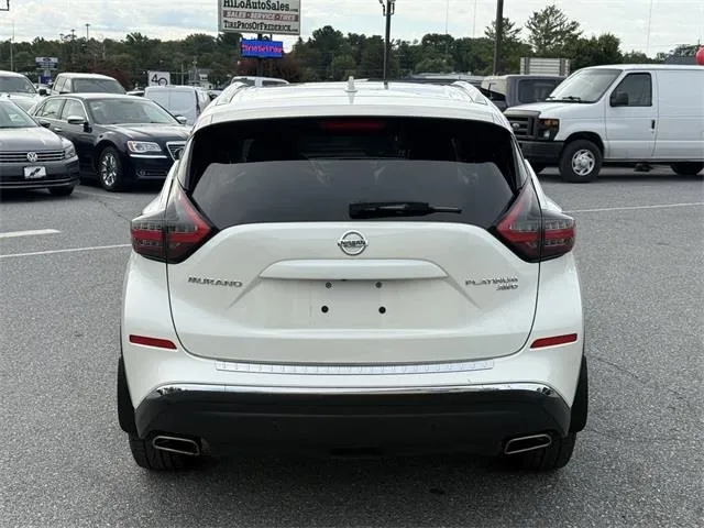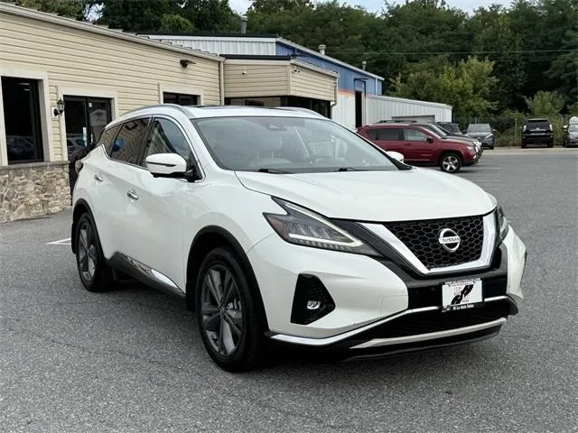Used 2022 Nissan Murano Platinum for sale in Frederick, MD. Introducing the 2022 Nissan Murano Platinum, a luxurious and versatile SUV that elevates your driving experience with advanced technology and stunning design. Finished in a sophisticated Pearl White TriCoat exterior complemented by plush Cashmere leather interior, this used vehicle embodies style and comfort. With only 54,754 miles on the odometer, this certified model guarantees dependability and excellent condition. Its 3.5-liter V6 engine delivers an impressive 260 horsepower and 240 lb-ft of torque, paired seamlessly with a CVT with Xtronic transmission for smooth, responsive handling. Designed for those who demand both performance and elegance, the Murano Platinum features all-wheel drive, making it an ideal choice for various road conditions while providing superior traction and control. This SUV is packed with premium features such as blind spot monitor, Apple CarPlay, navigation system etc.