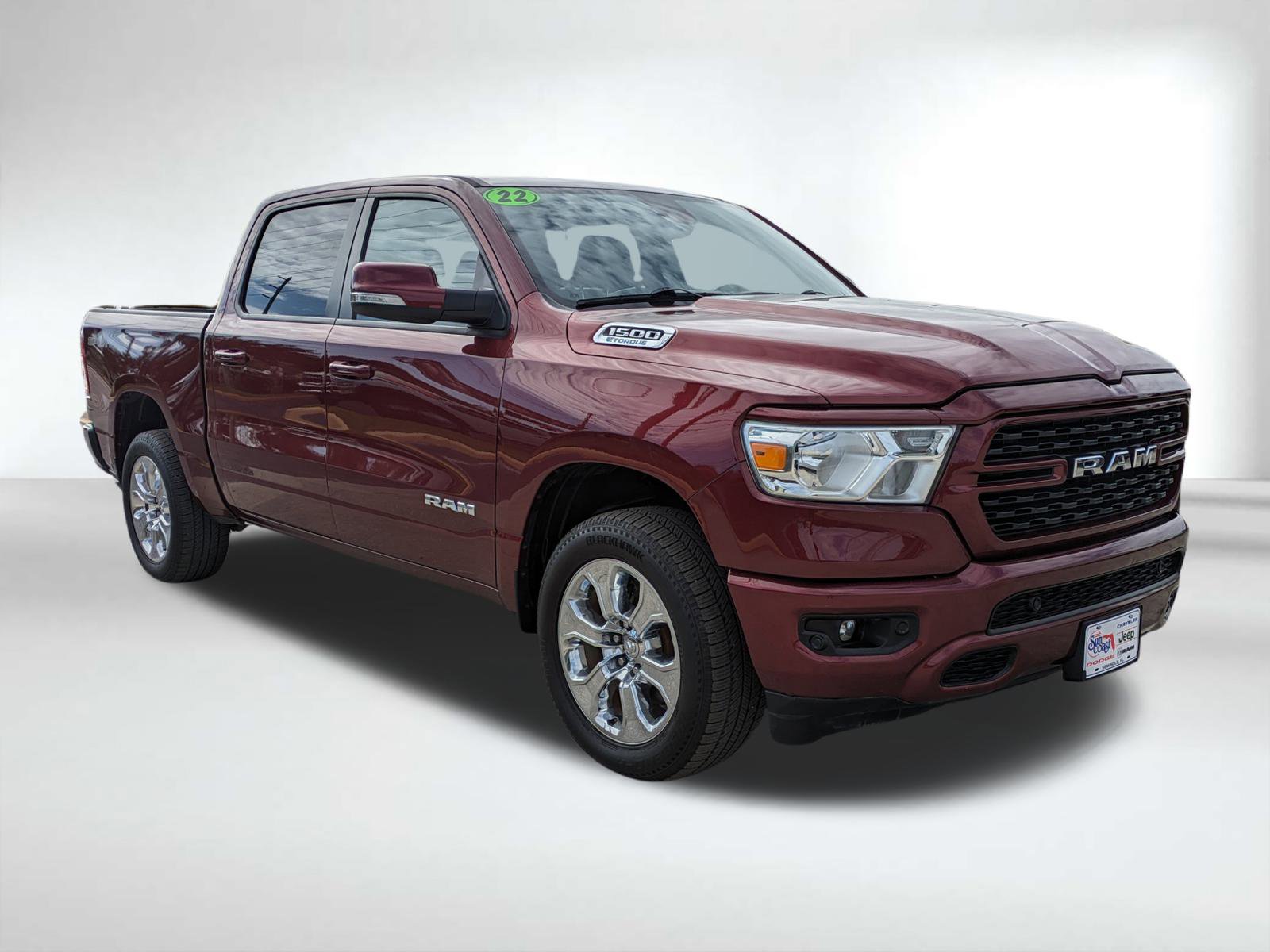Certified. Delmonico Red Pearlcoat 2022 Ram 1500 Big Horn/Lone Star 3.6L V6 24V VVT 8-Speed Automatic 4WD. Priced below KBB Fair Purchase Price! Vehicle pricing includes all offers and incentives. Sales tax, registration fees, dealer installed options, reconditioning costs, and $1,299 dealer fee not included in all vehicle prices shown and must be paid by the purchaser.
