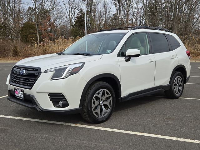 This 2022 Subaru Forester Premium in Crystal White Pearl features AWD Lineartronic CVT 2.5L 4-Cylinder DOHC 16V 26/33 City/Highway MPG.