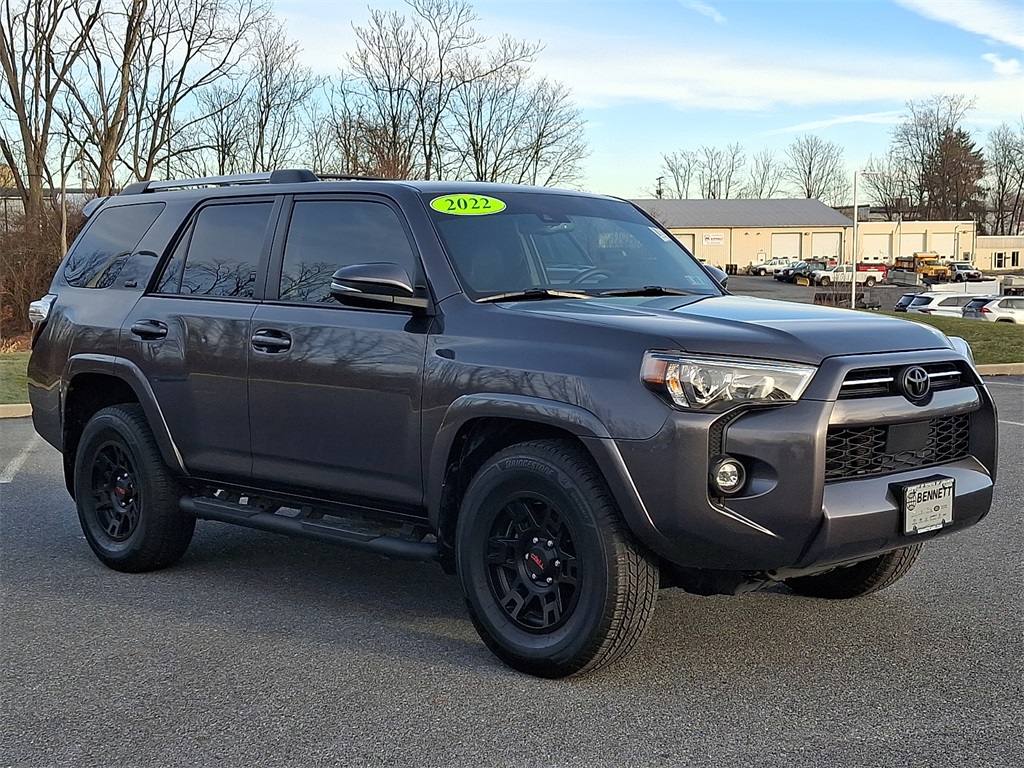 Graphite Artificial Leather, Blind Spot Monitor (BSM), Garage Door Opener, Moonroof Package, Moonroof w/Tilt Up & Slide, Outside Rear View Mirror, SR5 Premium Package w/Softex. CARFAX One-Owner. Clean CARFAX. Magnetic Gray Metallic 2022 Toyota 4Runner SR5 Premium RWD 5-Speed with ECT 4.0L V6 DOHC 24V. Bennett Toyota offers a wide selection of new and preowned vehicles. On most vehicles we offer a powertrain warranty. We also offer a great selection of extended warranties. Ask us about our market based pricing on all vehicles and what that means to you. Odometer is 2290 miles below market average! Since 1951, The Bennett Automotive Group has built a family tradition of honesty, trust and integrity while serving the Greater Lehigh Valley, Wyoming Valley and surrounding communities. We are proud to announce our newest member to the automotive group, Bennett Toyota of Lebanon, who will proudly serve the Lebanon Valley and surrounding communities, including Lebanon, Hershey, Harrisburg, York, Lancaster, Manheim, Reading, Sinking Spring, Mechanicsburg and Hamburg and providing world class service that over 100,000 customers have experienced at a Bennett dealership over the past 69 years. The Bennett Automotive Group is family owned and operated and our staff of dedicated team members at our six locations is eager to share their knowledge and enthusiasm. Experience A World of Difference today at Bennett Toyota of Lebanon.