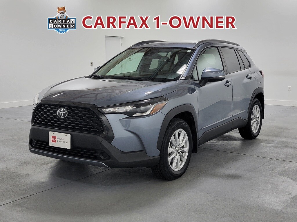 CARFAX One-Owner. Clean CARFAX. Odometer is 4717 miles below market average! Certified. Toyota Details: Powertrain Limited Warranty: 84 Month/100,000 Mile (whichever comes first) from TCUV purchase date. 160 Point Inspection. Vehicle History. Roadside Assistance. HV Battery Warranty coverage for 10 years/150,000 miles. (2020 model year forward Hybrid-Related) 8 years/100,000 miles, whichever comes first, from original date of first use when sold as new. Fuel Cell Vehicle Warranty 8 years/100,000 mile (whichever comes first) on key fuel cell components. Roadside Assistance for 7 Year / 100,000 Mile. Warranty Deductible: $0. Transferable Warranty. Limited Warranty: 12 Month/12,000 Mile Limited Comprehensive Warranty: 12 Month/12,000 Mile (whichever comes first) from certified purchase date. Recent Arrival! With some available options like 17" Alloy Wheels, 4-Wheel Disc Brakes, 4.014 Axle Ratio, 6 Speakers, ABS brakes, Air Conditioning, Alloy wheels, AM/FM radio: SiriusXM, Apple CarPlay/Android Auto, Auto High-beam Headlights, Automatic temperature control, Brake assist, Bumpers: body-color, Delay-off headlights, Driver door bin, Driver vanity mirror, Dual front impact airbags, Dual front side impact airbags, Electronic Stability Control, Emergency communication system: Safety Connect with 1-year trial, Exterior Parking Camera Rear, Fabric Seat Trim, Four wheel independent suspension, Front anti-roll bar, Front Bucket Seats, Front Center Armrest, Front reading lights, Fully automatic headlights, Heated door mirrors, Illuminated entry, Knee airbag, Leather steering wheel, Low tire pressure warning, Occupant sensing airbag, Outside temperature display, Overhead airbag, Panic alarm, Passenger door bin, Passenger vanity mirror, Power door mirrors, Power steering, Power windows, Radio data system, Radio: 6 Speaker Audio, Rear anti-roll bar, Rear side impact airbag, Rear window defroster, Rear window wiper, Remote keyless entry, Roof rack: rails only, Security system, Speed control, Split folding rear seat, Spoiler, Steering wheel mounted audio controls, Tachometer, Telescoping steering wheel, Tilt steering wheel, Traction control, Trip computer, Turn signal indicator mirrors, and Variably intermittent wipers. Celestite 2022 Toyota Corolla Cross LE 4D Sport Utility 2.0L I4 PDI DOHC 16V LEV3-SULEV30 169hp 29/32 City/Highway MPG AWD Automatic.