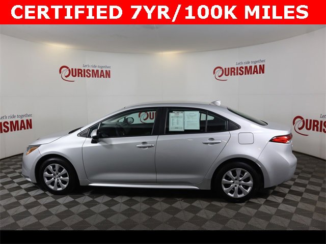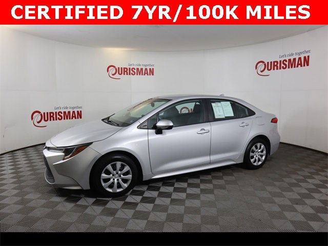 Certified. New Price! Silver 2022 Toyota Corolla LE FWD CVT 1.8L I4 DOHC 16V Clean CARFAX. Certified 7 year/ 100,000 mile warranty. Our best available bank and credit union financing! Recent Arrival! 30/38 City/Highway MPG Certification Program Details: 7 Year/ 100,000 mile warranty.