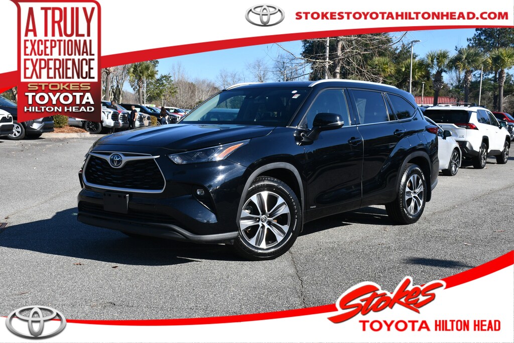 TOYOTA CERTIFIED***Stokes Toyota Hilton Head*** 2022 Toyota Highlander Hybrid XLE in Midnight Black Metallic, Factory Equipped With: Exterior: LED Headlights, Taillights, Fog Lights. Heated Power Outside Mirrors. Power Liftgate. Power Tilt/Slide Moonroof w/Sunshade. Interior: Audio Plus - 8-in Touchscreen, Hands-Free Bluetooth Phone/Music, USB-A Media Port, 4 USB-C Charge Ports, SiriusXM. Android Auto & Apple CarPlay Compatible. Seating for 7; SofTex-Trimmed Seats. Heated & Power Front Seats. 3rd Row 60/40 Split Fold-Flat Seats. Integrated 2nd Row Window Sunshades. 3-Zone Auto Climate Control. Wireless Smartphone Charger. Auto-Dimming Mirror w/Garage Door Opener. 14 Cup/Bottle Holders. Lighted Vanity Mirrors. 7-in Color LED Multi-Info Display. Clean CARFAX. Professionally Serviced and Detailed for your Peace of Mind. CALL US TODAY FOR MORE DETAILS OR TO SCHEDULE A TEST DRIVE AT 843.815.0240 OR VISIT US ON THE WEB AT WWW.STOKESTOYOTAHILTONHEAD.COM OR VISIT US AT 100 FORDING ISLAND ROAD, BLUFFTON SC 29910.
