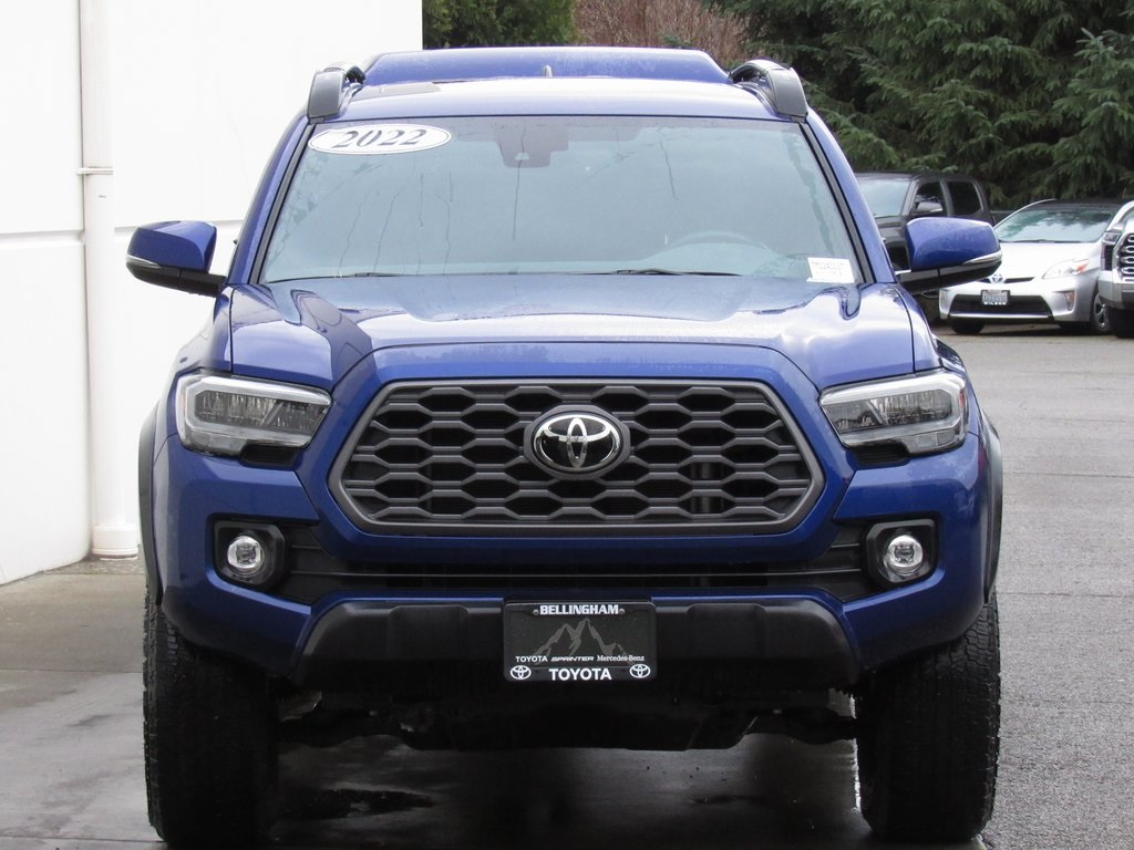 Recent Arrival! Certified. Carfax One-Owner. Clean Carfax. Blue Crush Metallic 2022 Toyota Tacoma TRD Off-Road V6 4D Double Cab 4WD 6-Speed Automatic. Priced below KBB Fair Purchase Price! iPhone Integration, AWD / 4x4 / Four Wheel Drive, Alloy Wheels, Aluminum Wheels, Backup Camera, Bluetooth®, Leather Seats, Moonroof, Multimedia Package, Navigation System, Off Road Package, P01 Premium Package, Sunroof/Moonroof, Tow Package, Trailer Package, TRD Package. FEEL CONFIDENT ABOUT YOUR CHOICE. Every vehicle comes with a thorough inspection report & Carfax history report.