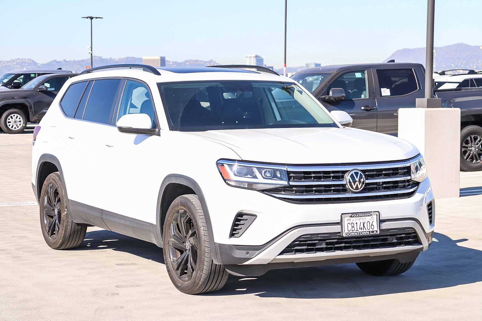Volkswagen of Downtown LA presents for sale this 2022 Volkswagen Atlas 3.6L V6 SE w/Technology as part of our hand-selected pre-owned lineup. This vehicle is finished in the Pure White exterior paint and Titan Black interior. Features Include: Atlas 3.6L V6 SE w/Technology, Volkswagen Certified Pre-Owned Certified, 4D Sport Utility, 3.6L VR6, 8-Speed Automatic with Tiptronic, FWD, Pure White, Titan Black w/Perforated V-Tex Leatherette Seating Surfaces, 6 Speakers, Brake assist, Electronic Stability Control, Exterior Parking Camera Rear, Front dual zone A/C, Front fog lights, Power Liftgate, Radio: MIB3 Composition Media w/8 Touchscreen, Spoiler, and Wheels: 20 x 8J 5-Spoke Silver Painted Alloy. Multi Point Safety and Mechanical Inspection Performed By Certified Technician. Talk, Text or Chat with us, our goal is to provide you with a remarkable experience. We Offer: Online Credit Application. Call Us for Details or Schedule a Test Drive Appointment!