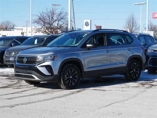 Certified. AWD, all wheel drive, Apple CarPlay, Android Auto, rearview camera system, Bluetooth, blind spot technology, heated seats, Active Blind Spot Monitor, Adaptive Cruise Control with Stop & Go, Automatic Rain-Sensing Front Wipers, Emergency Assist, Exterior Parking Camera Rear, Front Assist, Hands-On Detection Sensor Steering Wheel, Heated Front Bucket Seats, Heated front seats, Heated Leatherette-Wrapped Steering Wheel, IQ.Drive S Package, Lane Assist (Lane Keeping System), Leather-Trimmed Shifter, Light Assist (High Beam Control), Rear Traffic Alert, S Convenience Package, Travel Assist (Semi-Automated Driving Assistance). Clean CARFAX. Pyrite Silver Metallic 2022 Volkswagen Taos 1.5T S AWD 1.5L I4 Turbocharged DOHC 16V LEV3-SULEV30 158hp 7-Speed DSG Automatic with Tiptronic. Recent Arrival! Priced below KBB Fair Purchase Price! Odometer is 16204 miles below market average! 25/32 City/Highway MPG. Our Promise to You: At Volkswagen of Inver Grove, we use third party software daily to compare our vehicle pricing to all other dealer and private party listings on the internet in the greater Minneapolis St. Paul Market area. We will post one low price, plain and simple-always. At Volkswagen of Inver Grove you get a great valued priced vehicle right up front! Additionally, we recondition our vehicles to the highest standards. We are committed to making your car buying experience easy and earning your business for life! Please call us or email us to schedule a test drive today! We sell and service all makes and models of pre-owned, used vehicles, used cars, used trucks, used sport utility vehicles.
