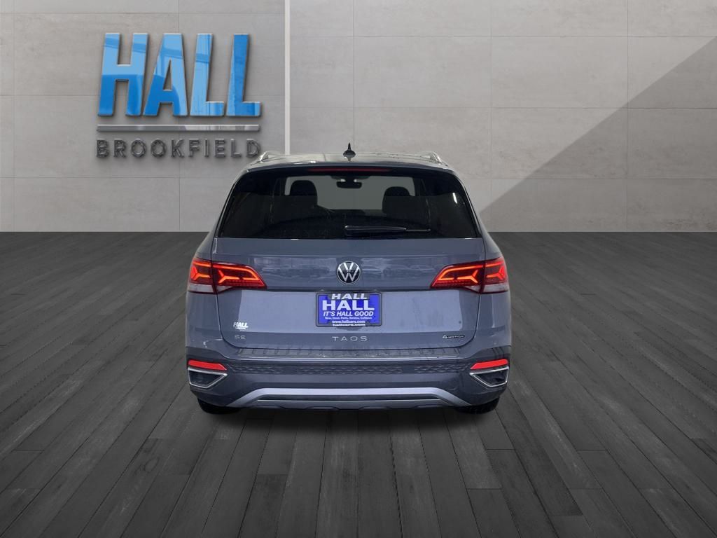 2022 Volkswagen Taos 1.5T SE 4MOTION - Certified Pre-Owned. This 2022 Volkswagen Taos SE 4MOTION delivers big-SUV confidence in a compact, easy-to-drive package. Powered by a 1.5L turbocharged engine paired with an 8-speed automatic transmission, it offers responsive performance and excellent efficiency, while 4MOTION all-wheel drive adds traction and stability in changing road conditions. Inside, the Taos features a modern, thoughtfully designed cabin with leatherette seating, heated front seats, a power-adjustable driver's seat, and generous headroom and legroom for both front and rear passengers. Its smart interior layout and flexible cargo space make it ideal for commuting, errands, and weekend getaways. Technology highlights include Volkswagen's Digital Cockpit display, an intuitive touchscreen infotainment system, Apple CarPlay and Android Auto, Bluetooth connectivity, and multiple USB ports to keep everyone connected on the go. Safety and driver-assistance features such as Blind Spot Monitoring, Rear Cross-Traffic Alert, Adaptive Cruise Control, Lane Keep Assist, and front and rear parking sensors help provide confidence behind the wheel. As a Volkswagen Certified Pre-Owned vehicle, this Taos has passed a rigorous multi-point inspection by Volkswagen-trained technicians and includes CPO warranty coverage and 24-hour roadside assistance, giving you added peace of mind with every mile. Efficient, capable, and backed by Volkswagen CPO protection, this 2022 Taos SE 4MOTION is a smart choice for drivers who want comfort, confidence, and versatility in a compact SUV.