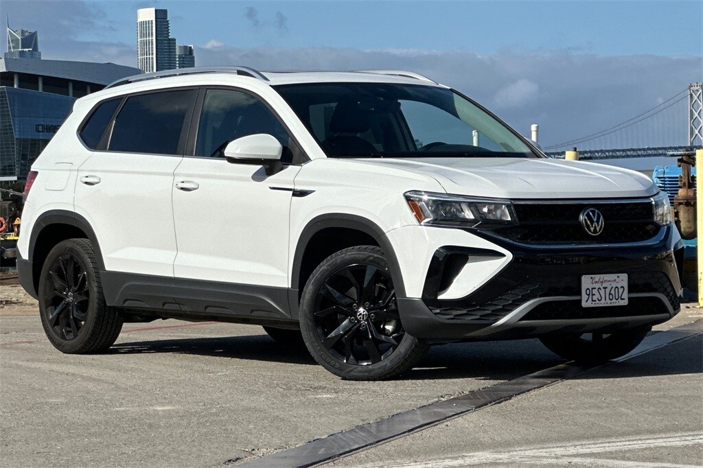 Certified. Pure White 2022 Volkswagen Taos 1.5T SE FWD. CARFAX One-Owner. Clean CARFAX. Certified, 18" Black Alloy Wheels, Adaptive Cruise Control (ACC) w/Stop & Go, Convenience Features, Driver Assistance Package, Emergency Assist, Lane Assist (Lane Keeping System), Panoramic Sunroof Package, Travel Assist (Semi-Automated Driving Assistance). 28/36 City/Highway MPG. Volkswagen Certified Pre-Owned Details: Vehicle History, 100+ Point Inspection, Warranty Deductible: $50, Model Year 2020 and Newer Vehicles: 2-Year or 24,000-Mile (whichever occurs first) Comprehensive Limited Warranty. Model Year 2019 Vehicles: 1-Year or 12,000-Mile (whichever comes first) Comprehensive Limited Warranty. Electric Vehicles Model Year 2019 & Newer: 3-Year or 36,000-Mile (whichever comes first) Comprehensive Limited Warranty. 2 Years of 24-Hour Roadside Assistance, Three Months of SiriusXM Platinum Plan Trial Subscription. Roadside Assistance.