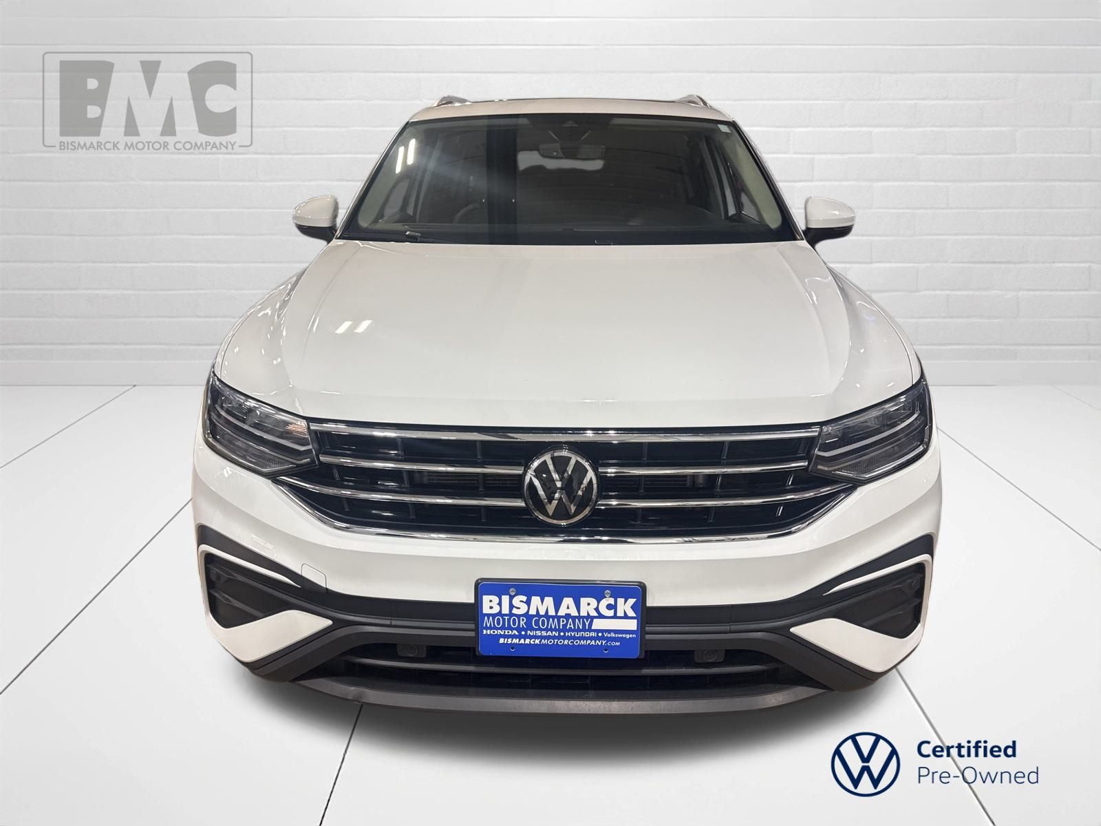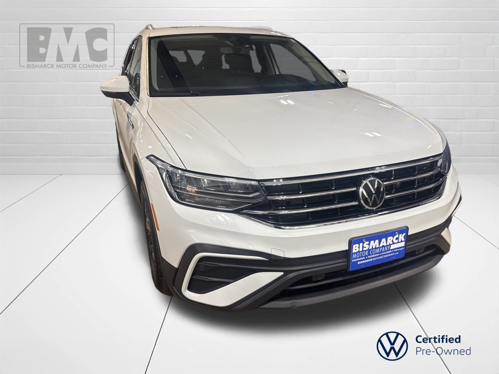 At Bismarck Motor Company, we believe car buying should be transparent and pressure-free. Every vehicle we sell is thoroughly inspected, competitively priced, and comes with our commitment to honest service. No games, no gimmicks—just quality vehicles and people who care about getting you on the road with confidence. This 2022 Volkswagen Tiguan 2.0T SE is an exceptional choice for the discerning driver. Boasting a powerful 2.0L TSI DOHC engine paired with an 8-Speed Automatic with Tiptronic transmission and all-wheel drive, this Tiguan delivers a thrilling and confident driving experience. With an impressive 22 city and 29 highway MPG, you'll enjoy exceptional fuel efficiency and reduced trips to the pump. This Tiguan has been meticulously maintained and is backed by our Certified Pre-Owned program. That means you can drive with confidence, knowing this vehicle has undergone a rigorous 100+ point inspection and comes with a comprehensive warranty for your peace of mind. Imagine the convenience of the Tiguan's spacious interior, the comfort of the heated front seats, and the added security of all-wheel drive. This is an exceptional opportunity to own a well-equipped, low-mileage Tiguan at an exceptional value. At Bismarck Motor Company, we're committed to providing you with a stress-free and enjoyable car-buying experience.