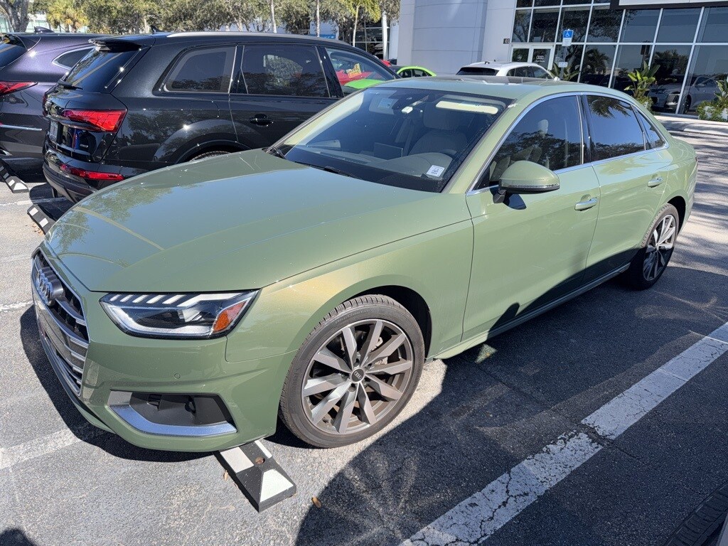 ONE OWNE! LOW MILES! $45,760 ORIG MSRP! Audi Certified Warranty good through 02/13/2028 or 70,000 miles! Recent Arrival! District Green Metallic 2023 Audi A4 40 Premium quattro 2.0L TFSI 7-Speed Automatic S tronic quattro. Clean CARFAX. CARFAX One-Owner. Audi Certified pre-owned Details: Certified pre-owned Limited Warranty, Vehicle History, Roadside Assistance, Warranty Deductible, 125+ Point Inspection. Discover your dream vehicle at our dealership! Choose from a vast selection of reliable used and brand new cars at unbeatable prices. Enjoy personalized service and unbeatable deals. Let us deliver you the car and the experience today!