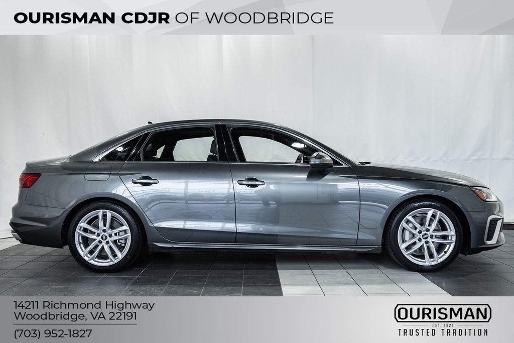 2023 Audi A4 45 S line Premium Plus quattro power moonroof, sunroof, power tilt sliding roof, dynamic radar cruise control, adaptive cruise control, smart cruise control, lane departure alert, lane keeping alert, lane departure warning, rearview camera, back up camera, reverse camera, rear view camera with dynamic guidelines, Android Auto and Apple CarPlay, hands free liftgate, power lift gate, automatic lift gate, leather seats, heated front seats, power windows and locks, all wheel drive, Audi quattro, steering wheel audio controls, cruise control, rear cross traffic alert, push-button start, premium audio sound system, Bluetooth, Bluetooth audio streaming, Bluetooth hands-free phone system, one owner, dual zone A/C controls, back up sensors, 360-degree camera, 360 camera surround view camera. Clean CARFAX. CARFAX one-owner. Odometer is 11,010 miles below market average!