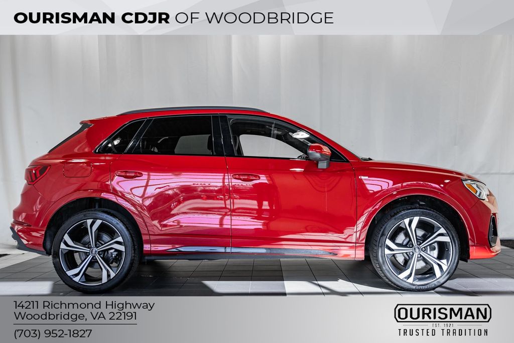 2023 Audi Q3 Premium Plus S Line quattro Panoramic roof / dual sunroofs / twin panel moonroof, power moonroof / sunroof / power tilt sliding roof, navigation / GPS / nav, voice activated navigation, BLIS / blind spot monitoring, blind spot detection, dynamic radar cruise control / adaptive cruise control / smart cruise control, lane departure alert / lane keeping alert, lane departure warning, rearview camera / back up camera / reverse camera, rear view camera wdynamic guidelines, Android Auto & Apple CarPlay, leather seats, heated front seats, power windows & locks, all wheel drive / AWD / Audi quattro, steering wheel audio controls, cruise control, wireless charging, push-button start, remote start, premium audio sound system, Bluetooth, paddle shifters / commander switch, one owner, dual zone A/C controls, back up sensors, front and rear park assist. Clean CARFAX. CARFAX One-Owner.