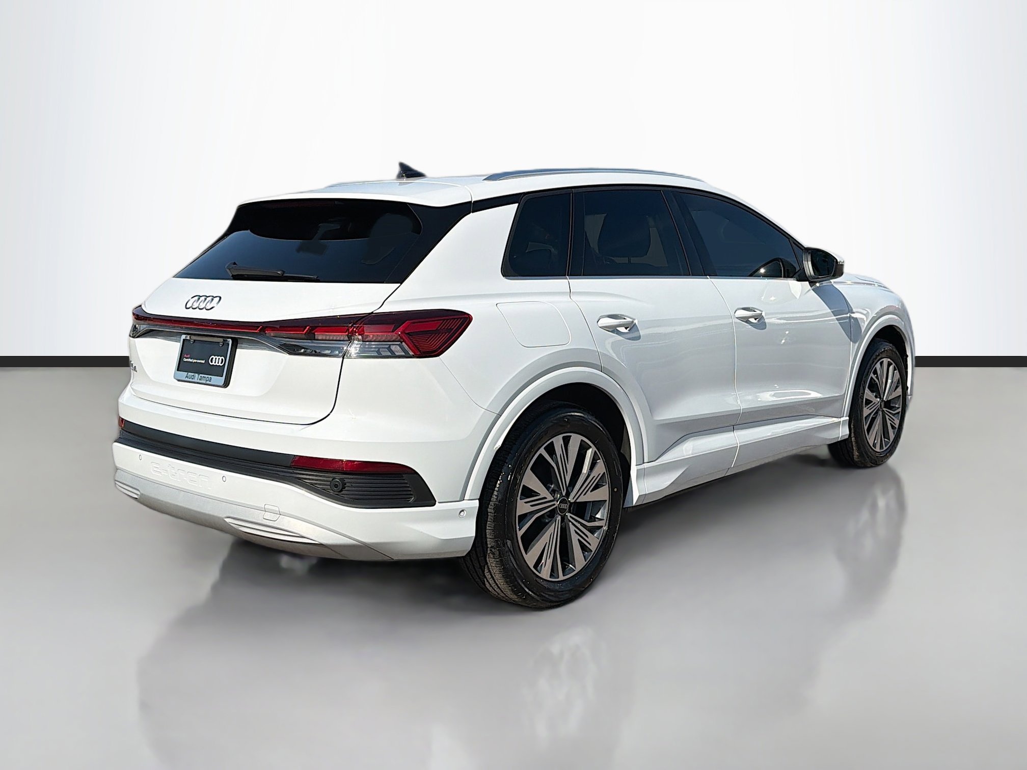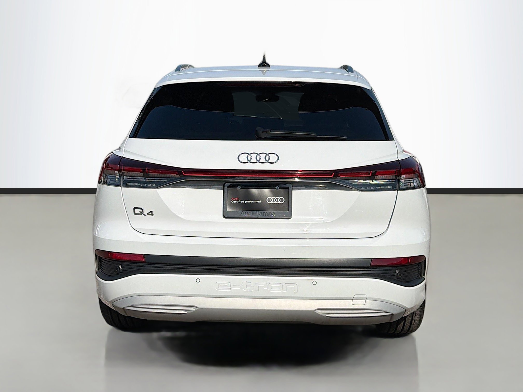 DRIVE WITH CONFIDENCE AT Audi Tampa! Discover our carefully inspected and professionally reconditioned pre-owned collection, each one backed by our REAL LIFETIME POWERTRAIN WARRANTY. Every vehicle is selected to deliver the luxury, performance, and reliability you deserve, and prepared so you can enjoy every mile on the road with total peace of mind. Take a closer look at the premium features of this vehicle below. 2023 Audi Q4 e-tron Premium Plus this is manufacturer certified pre-owned Audi!, one owner vehicle!, Carfax buyback guarantee!, remainder of factory warranty available!, excellent service records available!, Apple CarPlay / Google Android Auto, touchscreen display, hands free phone connectivity, all electric vehicle!, AWD / all wheel drive, navigation / GPS capable, rear vision back - up camera, adaptive cruise control, lane keep assist with lane departure warning, blind spot monitor, leather seats, heated seats, power seating, memory seating, panoramic sunroof, power liftgate, keyless go / push button start. Q4 e-tron Premium Plus, 4D Sport Utility, Electric Motor, Single-Speed Automatic, RWD, Glacier White Metallic, Black/Rock Gray Stitching w/Leather Seating Surfaces. Join the Audi Tampa family and enjoy the easiest way to purchase your vehicle so easy you’ll love it. Don’t forget to ask about our Premium Protection Plus Package to keep your vehicle looking its best with advanced coatings for both the paint and interior. Drive with confidence knowing you’re backed by our outstanding lifetime roadside assistance, and enjoy the best value for your money. Call us at (813) 993-4728 and experience the Audi Tampa Excellence!