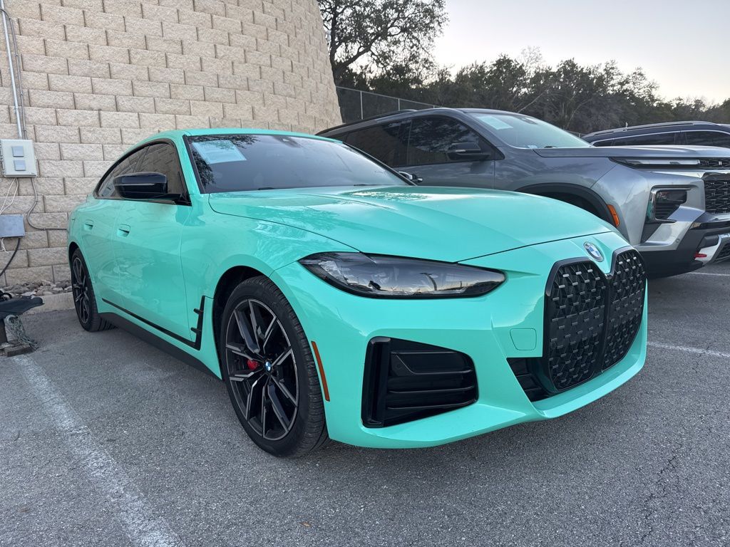 Certified. 2023 BMW 4 Series 430i Gran Coupe CARFAX One-Owner. Mint Green Recent Arrival! Aerodynamic Kit, M Sport Package, M Sport Package (337), M Sport Package Pro (33B), M Sport Suspension, M Steering Wheel, Mobility Kit, Navigation System, Rear Spoiler, Variable Sport Steering, Wheels: 19" x 8.5" Fr & 19" x 9.0" Rr Bi-Color Blk, Without Lines Designation Outside. Clean CARFAX. BMW Certified Pre-Owned Details: Transferable Warranty, Roadside Assistance, Limited Warranty: 12 Month/Unlimited Mile, Multipoint Point Inspection, Warranty Deductible: $0, 1 year/Unlimited miles beginning after new car warranty expires. 6-yrs Roadside Assistance. SiriusXM Satellite Radio 3-mos free. Every BMW Certified Plug-in Hybrid comes with an 8-Year/100,000-Mile Battery Guarantee. The Initial Battery Transfers to the New Owner. Vehicle History. At Principle BMW of San Antonio, we are more than just a dealership, we are a five-time BMW Center of Excellence winner and your destination for the best selection, service, and value in Texas. As one of the largest BMW dealerships in North America, we offer an unrivaled inventory of luxury performance vehicles paired with expert knowledge, and an unwavering passion for the Ultimate Driving Machine. Experience the difference at Principle BMW of San Antonio—where luxury meets performance, and guests become family.
