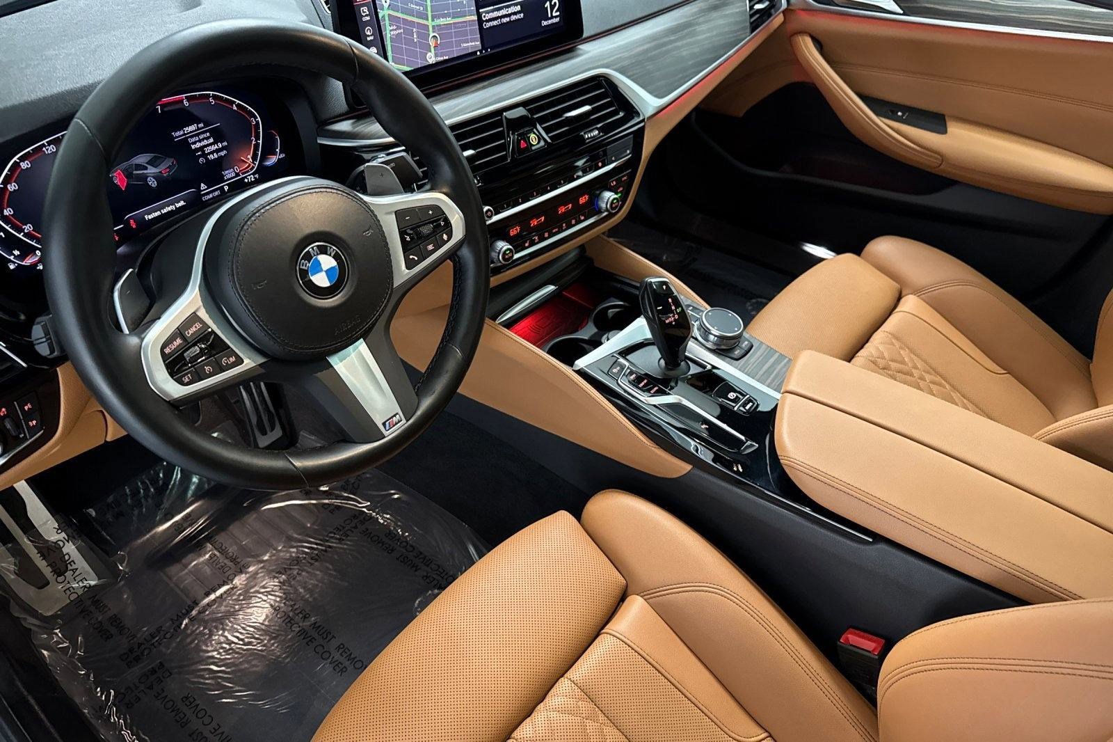 This 2023 BMW 5 Series 530i is a One Owner vehicle with a Clean Carfax, exterior, and interior. Key features include heated front seats, fineline cove matte finish wood trim, Cognac perforated Sensatec upholstery, M Sport package, convenience package, sun/moonroof, rear parking aid, blind spot monitor, cross-traffic alert, and much more! Our highly trained technicians inspected this vehicle and reconditioned it to Sonic Safety Standards. All recommended services are complete. Please chat, email or call today and request your VIP Appointment to enjoy the Beverly Hills BMW/Sonic Automotive Sonic Price Experience for yourself!