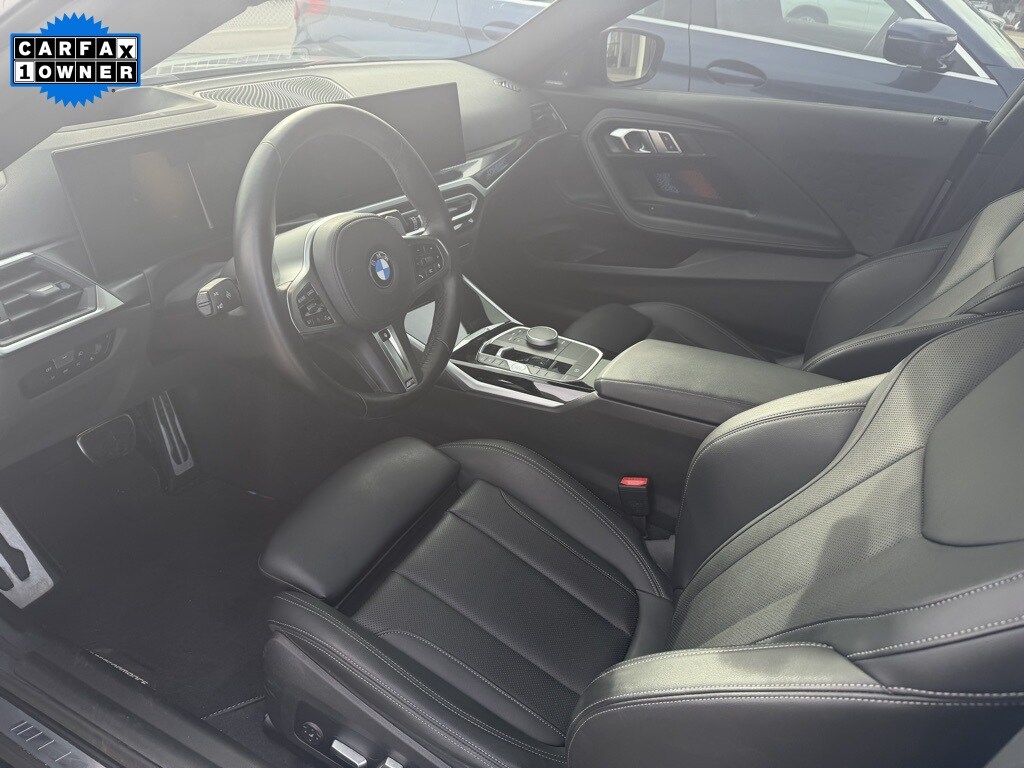 2023 BMW 2 Series M240i RWD. One Owner, Non-Smoker, Clean CarFax Report, Local Trade In. This vehicle features a range of luxury and performance features, including a premium sound system, heated seats, and a powerful engine. The M240i is known for its responsive handling and fast acceleration, making it a blast to drive. The styling is inspired by the original M3, and the car includes many of the same technology features as the 3 and 4 series.