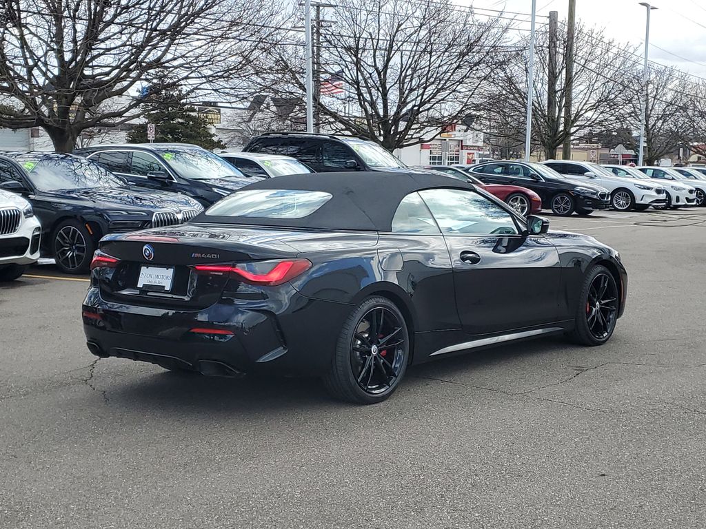 Experience the pinnacle of luxury and performance in this stunning 2023 BMW 4 Series M440i xDrive. Boasting a sleek Black exterior and a powerful 3.0L I6 engine paired with an 8-Speed Automatic Sport transmission and xDrive all-wheel drive, this BMW delivers an exhilarating driving experience with exceptional efficiency, achieving an impressive 22 MPG in the city and 31 MPG on the highway. This M440i xDrive is meticulously equipped with a host of premium features that elevate your driving experience, including a Head-Up Display, Heated Steering Wheel, Heated Front Seats, Active Driving Assistant Pro, Active Park Distance Control, Surround View with 3D View, and much more. The Shadowline Package adds a touch of sportiness with M Sport Brakes, an Extended Shadowline Trim, and Black Mirror Caps. Discover the thrill of the open road in this BMW 4 Series, which boasts a stunning Moonlight Black Soft Top that seamlessly integrates with the sleek profile. The premium interior is crafted with meticulous attention to detail, featuring Perforated SensaTec Upholstery, Power Front Seats, and a Sport Steering Wheel that perfectly complement the vehicle's dynamic performance. As a BMW Certified Pre-Owned vehicle, this M440i xDrive has undergone a rigorous multipoint inspection and comes with a comprehensive warranty, roadside assistance, and a vehicle history report. You can drive with confidence, knowing that your investment is protected. Experience the pinnacle of luxury and performance in this exceptional 2023 BMW 4 Series M440i xDrive. Schedule a test drive today and discover the thrill of owning this remarkable vehicle.