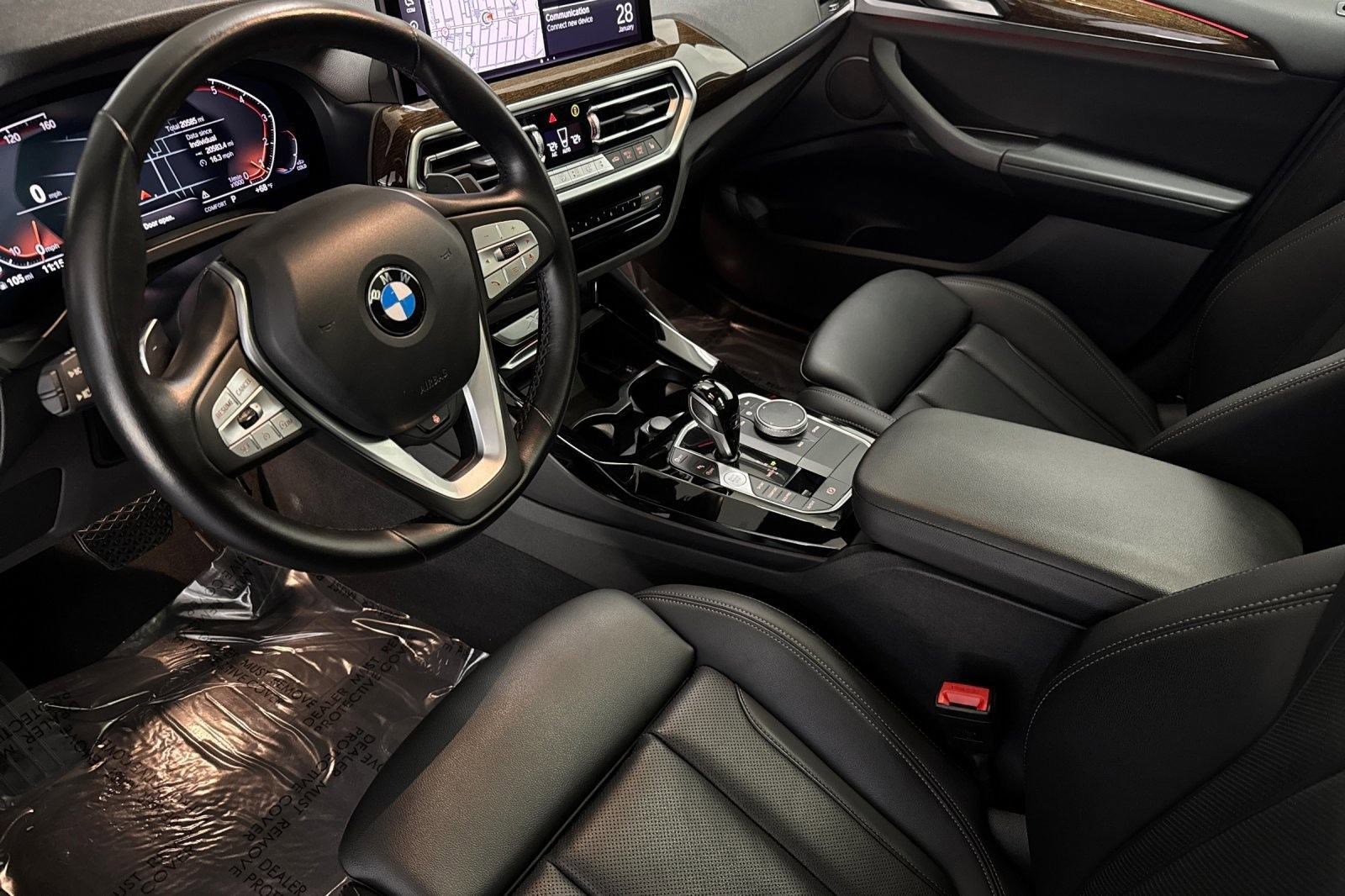 This 2023 BMW X3 sDrive30i is a One Owner vehicle with a Clean Carfax, exterior, and interior. Key features include panoramic moonroof, black perforated Sensatec upholstery, premium package, heated steering wheel, heated front seats, Woodgrain Interior Trim, Bluetooth Connection, Rear Parking Aid, Blind Spot Monitor, Cross-Traffic Alert, Lane Departure Warning, and much more! Our highly trained technicians inspected this vehicle and reconditioned it to Sonic Safety Standards. All recommended services are complete. Please chat, email or call today and request your VIP Appointment to enjoy the Beverly Hills BMW/Sonic Automotive Sonic Price Experience for yourself!