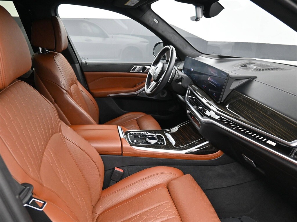 The 2023 BMW X7 M60i is a certified pre-owned luxury SUV with a V-8 engine and all-wheel drive. It features a Mineral White Metallic exterior and Tartufo interior, and is equipped with a navigation system, leather upholstery, and a head-up display. The vehicle offers a comfortable and technologically advanced driving experience, with features such as a panoramic moonroof, heated and cooled seats, and a surround sound system. With 32,180 miles on the odometer, it remains a solid and well-made vehicle, praised for its handling, power, and driver assistance package.