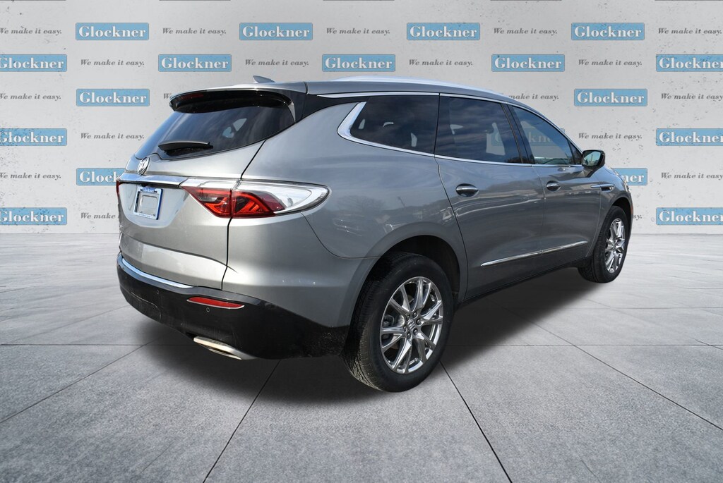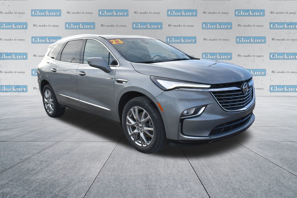 Glockner of Ironton is proud to offer this great-looking 2023 Buick Enclave in Moonstone Gray Metallic. This 2023 Buick Enclave has passed our comprehensive inspection and comes with the following features; Experience Buick Package (Front Power Sliding Moonroof), Preferred Equipment Group 1SL (Front & Rear Park Assist and Heated Steering Wheel), Glockner Certified Certified, FWD, 18 Aluminum Wheels, 20 Polished Aluminum Wheels, 3rd row seats: split-bench, 4-Wheel Disc Brakes, 6 Speakers, 6-Way Power Front Passenger Seat Adjuster, 7-Passenger Seating, 8-Way Power Driver Seat Adjuster, ABS brakes, Air Conditioning, Alloy wheels, AM/FM radio: SiriusXM with 360L, Auto High-beam Headlights, Auto-dimming door mirrors, Auto-dimming Rear-View mirror, Automatic temperature control, Brake assist, Bumpers: body-color, Compass, Delay-off headlights, Driver door bin, Driver vanity mirror, Dual front impact airbags, Dual front side impact airbags, Electronic Stability Control, Emergency communication system: OnStar and Buick connected services capable, Four wheel independent suspension, Front anti-roll bar, Front Bucket Seats, Front Center Armrest, Front dual zone A/C, Front reading lights, Fully automatic headlights, Garage door transmitter, Heated door mirrors, Heated Driver & Front Passenger Seats, Heated front seats, Heated steering wheel, Illuminated entry, Leather steering wheel, Low tire pressure warning, Occupant sensing airbag, Outside temperature display, Overhead airbag, Overhead console, Panic alarm, Passenger door bin, Passenger vanity mirror, Perforated Leather-Appointed Seat Trim, Power door mirrors, Power Driver Lumbar Control Seat Adjuster, Power driver seat, Power Liftgate, Power Passenger Lumbar Control Seat Adjuster, Power passenger seat, Power steering, Power windows, Premium audio system: Buick Infotainment System, Radio data system, Radio: Buick Infotainment System AM/FM Stereo, Rear air conditioning, Rear anti-roll bar, Rear reading lights, Rear window defroster, Rear window wiper, Remote keyless entry, Roof rack: rails only, Security system, SiriusXM w/360L, Speed control, Speed-sensing steering, Spoiler, Steering wheel mounted audio controls, Tachometer, Telescoping steering wheel, Tilt steering wheel, Traction control, Trip computer, Turn signal indicator mirrors, Variably intermittent wipers, Voltmeter.