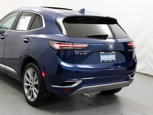 Certified. Sapphire Metallic 2023 Buick Envision Avenir CARFAX One-Owner. AWD 9-Speed Automatic 2.0L Turbocharged. Buick Certified Pre-Owned Details: WE ACCEPT ALL CREDIT!! SE HABLA ESPANOL!! WE SPEAK RUSSIAN!! 24 months/24,000 miles (whichever comes first) Certified Pre-Owned Scheduled Maintenance Plan and 3 days/150 miles (whichever comes first) Vehicle Exchange Program. 1 month of OnStar Safety & Security Plan, Navigation Services, Remote Access Plan, and 1 month or 3GB of 4G LTE data (whichever comes first). Warranty Deductible: $0. Limited Warranty: 12 Month/12,000 Mile (whichever comes first) from certified purchase date. Powertrain Limited Warranty: 72 Month/100,000 Mile (whichever comes first) from original in-service date. Vehicle History. Transferable Warranty. 172 Point Inspection. Roadside Assistance.