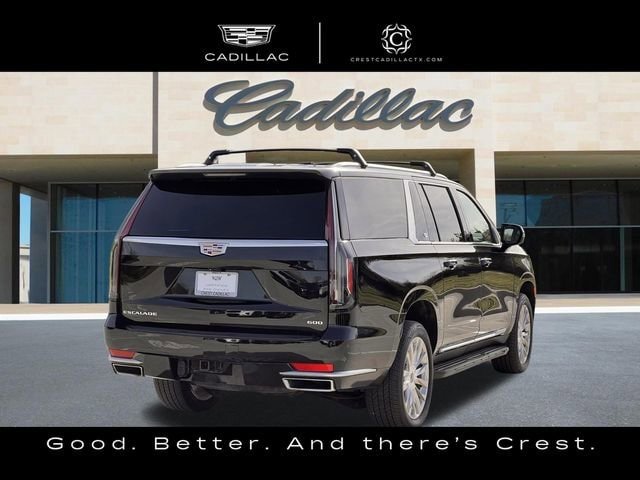 Certified. Recent Arrival! Cadillac Certified Pre-Owned Details: Vehicle History, Transferable Warranty, Courtesy transportation 24 hour Roadside Assistance for the life of the warranty and stringent 172-point inspection reconditioning process. SiriusXM 3-month trial subscription. Roadside Assistance, Warranty Deductible: $0, Limited Warranty: 12 Month/Unlimited Mile (whichever comes first) after new car warranty expires or from certified purchase date, 172 Point Inspection CARFAX One-Owner. 2023 Cadillac Escalade ESV Premium Come visit us at our new location in Frisco, TX at 121 and Legacy. Our new home defines the Crest Experience with luxurious waiting areas that feature full service Cafes with menus from our own Executive Chef and Baristas to make your favorite coffee. Or just come and practice your short game on either of our two Professional Golf Putting Greens. Come visit us for lunch anytime we look forward to seeing you. Thank you for viewing our vehicle. You can see more Premium Pre-Owned vehicles like this one at CrestCars.com. Crest Automotive Group proudly serving the following communities: Plano, Mckinney, Allen, Richardson, Dallas, Ft. Worth, Grapevine, Bedford, Hurst, Mesquite, Frisco, Lewisville, Little Elm, Arlington, Coppell, Grand Prarie, Euless, Colleyville, Wylie, Lavon, Prosper, Denton, Murphey, Anna, Celina, Sherman, Southlake, Flowermound, DFW, Addison, Irving, Las Colinas, Garland, Aubrey, Oak Point, Corinth, University Park, Highland Park, Carrolton, Richardson, Melissa, Azle, Lake Dallas, Krum, Roanoke, Keller, Trophy Club, Farmers Branch. Haslet, Bedfprd. Euless, Hurst, North Richland Hills, Saginaw, Justin, Benbroook, White Settlement, Hudson Oaks, Weatherford, Crowley, Watauga, Cedar Hill, Desoto, Duncanville, Midlothian, Waxahachie, Mansfield, Red Oak, Lancaster, Ennis, Palmer, Balch Springs, Mesquite, Cleburne, Alvarado, Seagoville, Combine, Terrell, Rockwall, Sachase, Allen, The Colony, Pilot Point, Gainsville, Whitesboro.