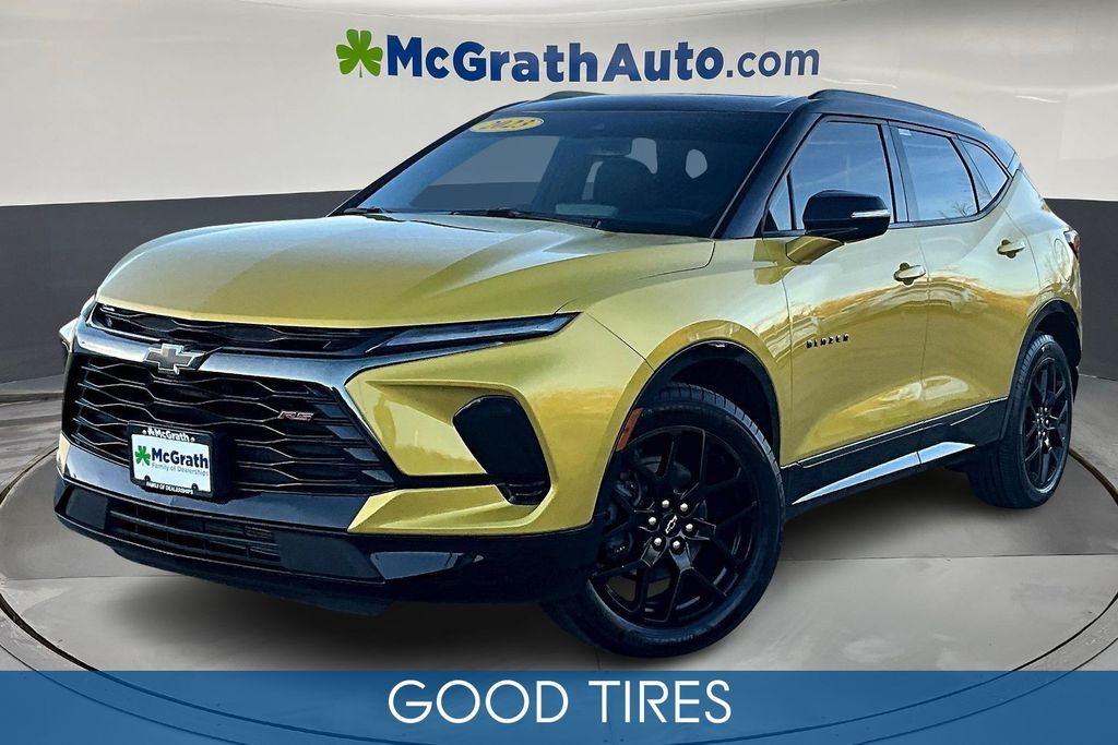 Discover the 2023 Chevrolet Blazer RS, a striking SUV that seamlessly blends style, performance, and cutting-edge technology. This stunning Nitro Yellow Metallic model, with its eye-catching black two-tone roof, is a true head-turner on the road. Boasting an impressive list of features, the Blazer RS is equipped to enhance your driving experience. Powered by a robust 3.6L V6 SIDI engine and paired with a 9-Speed Automatic with Overdrive transmission, this all-wheel-drive Blazer delivers an exhilarating performance with an EPA-estimated 19 city/26 highway MPG. Step inside and you'll be greeted by a wealth of premium amenities, including the Bose Premium 8-Speaker Audio System, Chevrolet Infotainment 3 Premium System with Navigation, and a host of advanced safety features like Rear Park Assist and Automatic Emergency Braking. Comfort is paramount in the Blazer RS, with heated and ventilated front seats, a heated steering wheel, and a power tilt-and-telescoping steering column for the perfect driving position. This one-owner Blazer has been meticulously maintained and comes with a clean CARFAX report, giving you the peace of mind of knowing its history. With low mileage and an attractive price, this is an exceptional opportunity to own a well-equipped and stylish SUV. Don't miss your chance to experience the 2023 Chevrolet Blazer RS. Schedule a test drive today and discover the perfect balance of style, performance, and technology that this remarkable SUV has to offer.