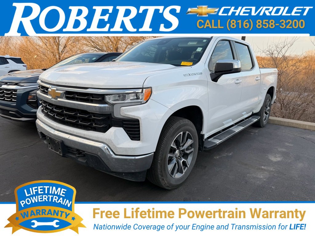 Recent Arrival! Certified. 2023 Chevrolet Silverado 1500 LT LT1 4D Crew Cab 4WD 2.7L Turbo Summit White. CARFAX One-Owner. Clean CARFAX. At Roberts Chevrolet in Platte City, we take pride in being a family-owned and operated dealership serving drivers in the vehicle. We take pride in providing the best service to our customers. Our customers appreciate our commitment to our customers. We offer a Free Lifetime Powertrain Warranty on all vehicles. Our customers appreciate our warranty. We offer a wide selection of new and pre-owned vehicles, offering top-notch service and maintenance to keep your vehicle running smoothly throughout its lifetime.