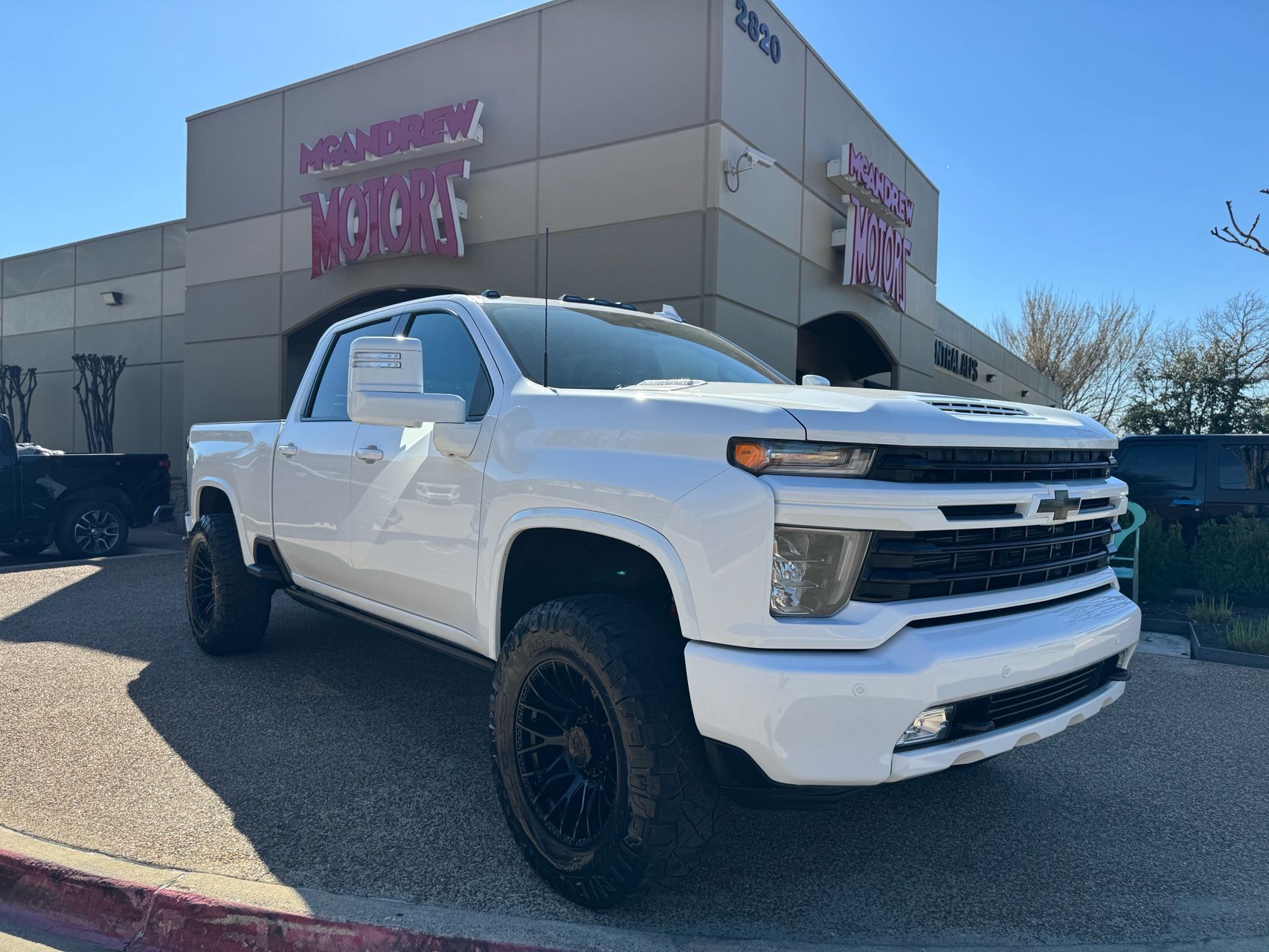 2023 Chevrolet Silverado 2500HD High Country 4WD Crew Cab Standard Bed in Summit White delivers heavy duty diesel power with premium comfort and bold custom styling for Arlington job sites and wide open Texas highways. Built to command every haul, this Silverado is powered by the 6.6 liter V8 diesel, delivering massive torque for towing trailers, equipment, and weekend toys with ease. Full time 4WD with Autotrac keeps you planted on rough back roads and changing conditions. This truck stands out with a lifted stance, color matched grille, and custom wheels and tires that give it an aggressive, head turning presence. The Summit White exterior paired with High Country detailing creates a clean, upscale look that still means business. Inside, the High Country trim brings true comfort to the heavy duty segment. The cabin features premium materials, a heated steering wheel for early mornings, and Apple CarPlay to keep navigation, calls, and music seamlessly connected. A power moonroof opens the cabin to sunrise skies, and Blind Spot Assist adds confidence when maneuvering through traffic or around job sites. Powerful, refined, and custom built to stand out, this 2023 Chevrolet Silverado 2500HD High Country 4WD is ready for serious work and serious presence in Arlington and across the DFW area. Come see it in person at McAndrew Motors and experience it for yourself.