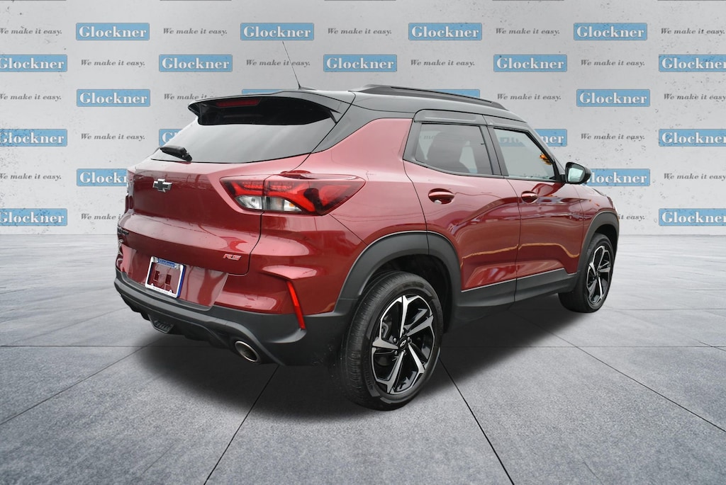 Glockner of Ironton is proud to offer this good-looking 2023 Chevrolet TrailBlazer in Crimson Metallic. This 2023 Chevrolet TrailBlazer has passed our comprehensive inspection and comes with the following features; Preferred Equipment Group 1RS (Heated Steering Wheel), Glockner Certified Certified, 2-Way Adjustable Front Head Restraints, 2-Way Power Driver Lumbar Seat Adjuster, 3.17 Axle Ratio, 4-Way Manual Front Passenger Seat Adjuster, 4-Wheel Disc Brakes, 6 Speakers, 6-Speaker Audio System Feature w/Amplifier, 7 Diagonal Color Touchscreen, 8-Way Power Driver Seat Adjuster, ABS brakes, Air Conditioning, Alloy wheels, AM/FM radio: SiriusXM, Auto High-beam Headlights, Brake assist, Bumpers: body-color, Cloth w/Leatherette Seat Trim, Compass, Delay-off headlights, Driver door bin, Driver vanity mirror, Dual front impact airbags, Dual front side impact airbags, Electronic Stability Control, Emergency communication system: OnStar and Chevrolet connected services capable, Exterior Parking Camera Rear, Flat-Folding Front Passenger Seatback, Front anti-roll bar, Front Bucket Seats, Front Center Armrest, Front fog lights, Front License Plate Bracket, Front reading lights, Front wheel independent suspension, Fully automatic headlights, Heated door mirrors, Heated Driver & Front Passenger Seats, Heated front seats, Heated steering wheel, Illuminated entry, Knee airbag, Leather Shift Knob, Leather steering wheel, Low tire pressure warning, Mosaic Black Metallic Two-Tone Roof, Occupant sensing airbag, Overhead airbag, Overhead console, Panic alarm, Passenger door bin, Passenger vanity mirror, Power door mirrors, Power driver seat, Power steering, Power windows, Radio data system, Radio: Chevrolet Infotainment 3 System, Rear seat center armrest, Rear side impact airbag, Rear window defroster, Rear window wiper, Remote keyless entry, Ride & Handling Suspension, Security system, SiriusXM Radio, Speed control, Split folding rear seat, Spoiler, Steering wheel mounted audio controls, Tachometer, Telescoping steering wheel, Tilt steering wheel, Traction control, Trip computer, Variably intermittent wipers, Wheels: 18 High Gloss Black Machined Aluminum.