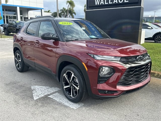 CARFAX One-Owner. Clean CARFAX. Certified. CARFAX 1 OWNER, Dealer Maintenance Performed:, LUBE, OIL, AND FILTER CHANGED, CERTIFICATION AVAILABLE FOR AN ADDITIONAL $1295.00. SEE DEALER FOR DETAILS!, 1 Type-A & 1 Type-C USB Charging-Only Ports, 120-Volt Power Outlet, 2-Way Power Driver Lumbar Seat Adjuster, 4-Way Manual Front Passenger Seat Adjuster, 6-Speaker Audio System Feature, 8-Way Power Driver Seat Adjuster, 8 Diagonal Color Touchscreen Display, AM/FM radio: SiriusXM, Auto High-beam Headlights, Brake assist, Cabin Humidity Sensor, Cloth w/Leatherette Seat Trim, Convenience Package, Delay-off headlights, Driver & Front Passenger Illuminated Vanity Mirrors, Driver Confidence Package, Dual-Pane Panoramic Power Sunroof, Electronic Stability Control, Exterior Parking Camera Rear, Front fog lights, Fully automatic headlights, Hands-Free Power Programmable Liftgate, Heated Driver & Front Passenger Seats, Heated front seats, Heated Steering Wheel, Heated steering wheel, Illuminated entry, Inside Rear-View Auto-Dimming Mirror, Lane Change Alert w/Side Blind Zone Alert, Leather Shift Knob, Leather steering wheel, Preferred Equipment Group 1RS, Rear Cross Traffic Alert, Rear Park Assist, Rear window wiper, Remote keyless entry, Single-Zone Auto Climate Control Air Conditioning, Steering wheel mounted audio controls, Sun & Liftgate Package, Variably intermittent wipers, Wheels: 18 High Gloss Black Machined Aluminum, Wireless Apple CarPlay/Android Auto. Crimson Metallic 2023 Chevrolet TrailBlazer RS FWD CVT 1.3L Ecotec Turbo DOHC SIDI w/VVT. Chevrolet Certified Pre-Owned Details: Limited Warranty: 12 Month/12,000 Mile (whichever comes first) from certified purchase date. Vehicle History. 24 months/24,000 miles (whichever comes first) Certified Pre-Owned Scheduled Maintenance Plan and 3 days/150 miles (whichever comes first) Vehicle Exchange Program. SiriusXM 3-month trial subscription. Warranty Deductible: $0. Roadside Assistance. 172 Point Inspection. Transferable Warranty. Powertrain Limited Warranty: 72 Month/100,000 Mile (whichever comes first) from original in-service date. Come to Wallace Chevrolet to view Over 300 preowned vehicles in stock! 1st Oil Change after purchase of vehicle is FREE! Recent Arrival! 29/33 City/Highway MPG.