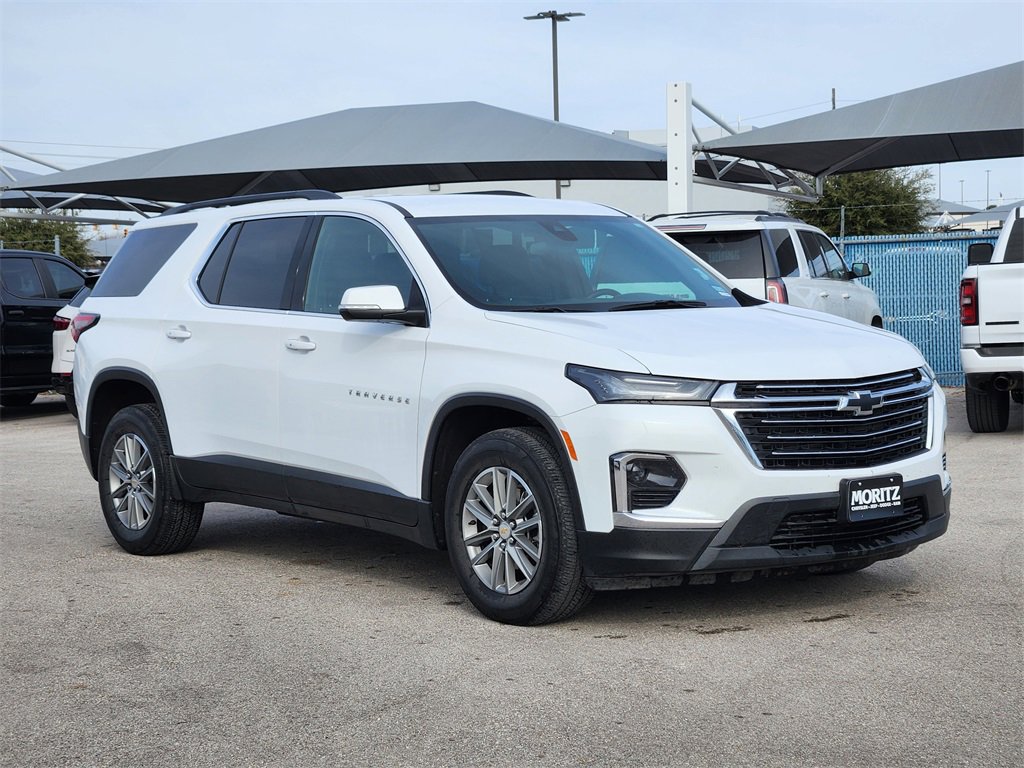Certified. Summit White 2023 Chevrolet Traverse LT 1LT FWD 9-Speed Automatic 3.6L V6 SIDI VVT Bluetooth, Backup Camera, The Moritz Promise LIMITED LIFETIME POWERTRAIN PROTECTION PLAN See dealer for details, 4.2 Multi-Color Enhanced Driver Instrument Display, Alloy wheels, Apple CarPlay/Android Auto, Automatic temperature control, Brake assist, Convenience & Driver Confidence", "Convenience & Driver Confidence", Electronic Stability Control, Exterior Parking Camera Rear View Camera Rear View Camera Rear View Camera", "Rear View Camera", "Rear Cross Traffic Alert", "Rear View Camera" "Rear View Camera", "Re" Rear View Camera", "Rear View Camera", "Rear Cross Traffic Alert", "Security System", SiriusXM w/360L, Speed-sensing steering, Spoiler, Steering wheel mounted audio controls, Telescoping steering wheel, Traction control, Universal Home Remote.