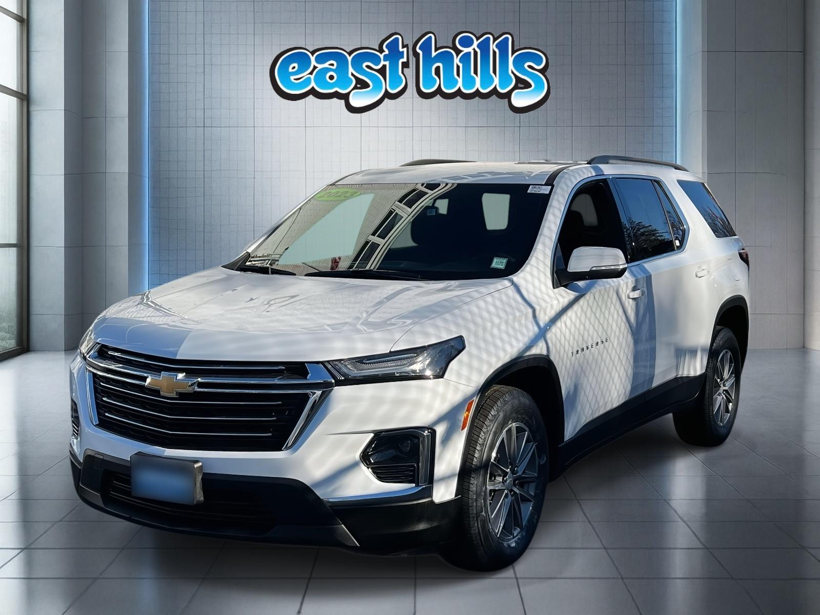 Certified. Summit White Clean CARFAX. CARFAX One-Owner. 2023 Chevrolet Traverse AWD LT 1LT Features Include: Front License Plate Bracket Mounting Package, Preferred Equipment Group 1LT (Heated Driver & Front Passenger Seats), 2-Way Manual Front Passenger Seat Adjuster, 3rd row seats: split-bench, 4-Wheel Disc Brakes, 6 Speakers, 6-Speaker Audio System Feature, 8-Way Power Driver Seat Adjuster, ABS brakes, Air Conditioning, Alloy wheels, AM/FM radio: SiriusXM, Apple CarPlay/Android Auto, Auto High-beam Headlights, Automatic temperature control, Black Roof Rails, Brake assist, Bumpers: body-color, Compass, Delay-off headlights, Driver door bin, Driver vanity mirror, Dual front impact airbags, Dual front side impact airbags, Electronic Stability Control, Emergency communication system, Exterior Parking Camera Rear, Four wheel independent suspension, Front anti-roll bar, Front Bucket Seats, Front Center Armrest, Front dual zone A/C, Front reading lights, Fully automatic headlights, Garage door transmitter, Heated door mirrors, Heated front seats, Illuminated entry, Leather steering wheel, Low tire pressure warning, Not Equipped with Rear Park Assist, Occupant sensing airbag, Outside temperature display, Overhead airbag, Overhead console, Panic alarm, Passenger door bin, Passenger vanity mirror, Power door mirrors, Power Driver Lumbar Control, Power driver seat, Power Liftgate, Power steering, Power windows, Premium Cloth Seat Trim, Radio data system, Radio: Chevrolet Infotainment 3 Plus System, Rear air conditioning, Rear anti-roll bar, Rear reading lights, Rear window defroster, Rear window wiper, Remote keyless entry, Security system, SiriusXM w/360L, Speed control, Speed-sensing steering, Spoiler, Steering wheel mounted audio controls, Tachometer, Telescoping steering wheel, Tilt steering wheel, Traction control, Trip computer, Turn signal indicator mirrors, Variably intermittent wipers, Voltmeter.
