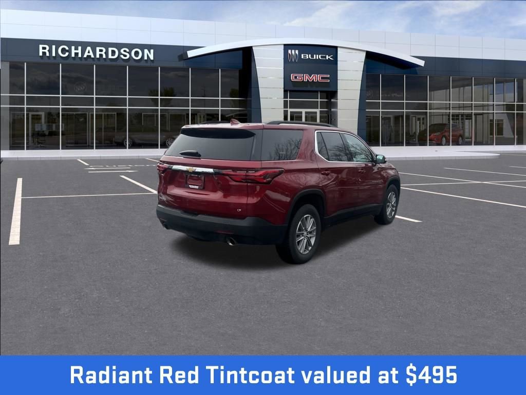 Discover the Refined Versatility of the 2023 Chevrolet Traverse LT 1LT. This 2023 Chevrolet Traverse LT 1LT is a remarkable pre-owned SUV that combines style, capability, and convenience. With its sleek Radiant Red Tintcoat exterior and well-appointed interior, this Traverse is ready to elevate your driving experience. This Traverse LT 1LT is more than just a capable SUV – it's a versatile companion that can adapt to your every need. With its spacious, well-designed cabin and a powerful 3.6L V6 engine, this Traverse provides a refined and confident driving experience, whether you're navigating the daily commute or embarking on a family adventure. The Convenience and Driver Confidence Package elevates your driving experience with features like the Chevrolet Infotainment 3 Plus system, heated front seats, and a rear power liftgate. The Rear Camera Mirror Package enhances visibility and safety with the HD Surround Vision system and Rear Camera Mirror Washer. For those with towing needs, the Trailering Equipment package, including a heavy-duty cooling system and trailering assist guidelines, ensures your Traverse is ready to handle your gear with ease. As a Chevrolet Certified Pre-Owned vehicle, this Traverse has undergone a rigorous 172-point inspection and comes with an impressive suite of benefits.