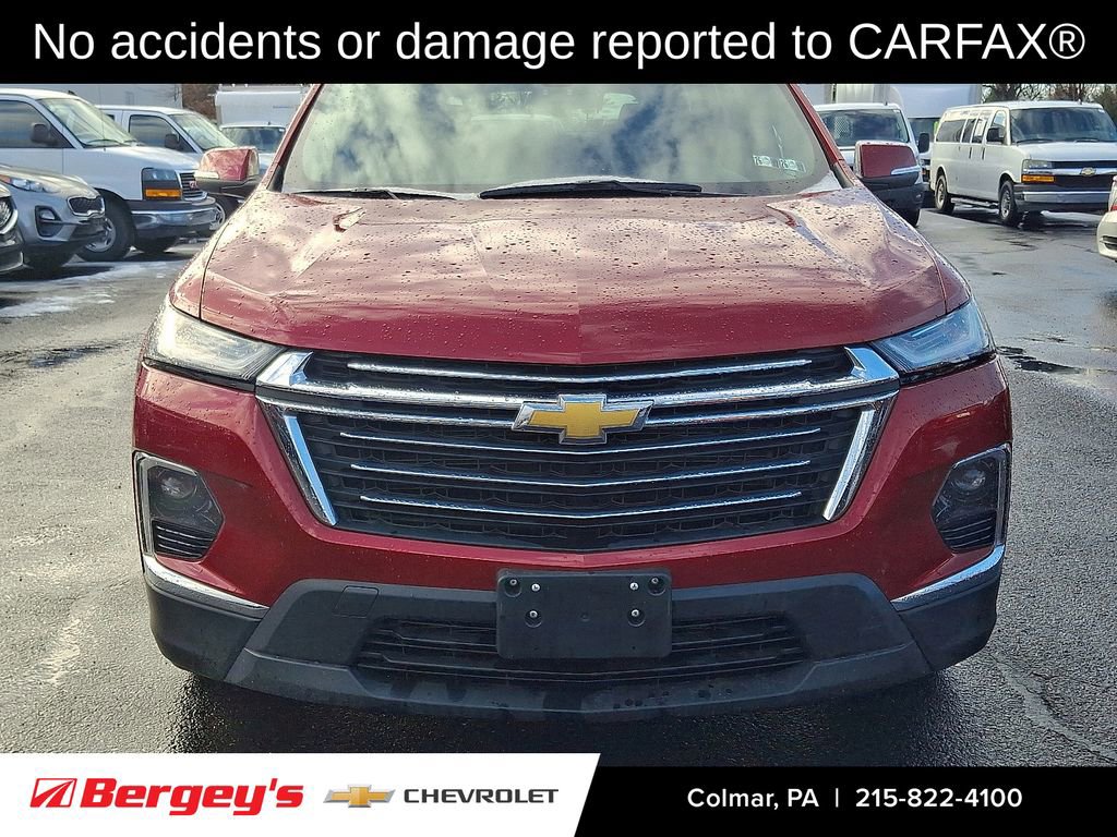 Recent Arrival! Clean Carfax. Carfax One-Owner. CarBravo Limited Bumper-to-Bumper Warranty When you choose a certified used vehicle less than 10 model years old and with less than 100,000 miles, you'll get 6-month/6,000-mile limited bumper-to-bumper warranty coverage with no deductible. Ownership Benefits: Courtesy Transportation, 24-Hour roadside assistance, 1-month trial of Onstar Connected Services or Onstar Guardian app, 3-month trial of SiriusXM, Support from one of the largest nationwide service networks. 2023 Radiant Red Tintcoat Chevrolet Traverse AWD 3.6L V6 SIDI VVT 9-Speed Automatic.