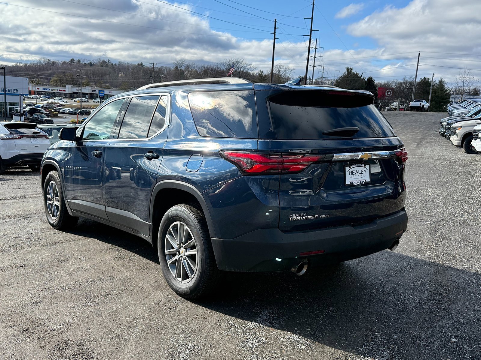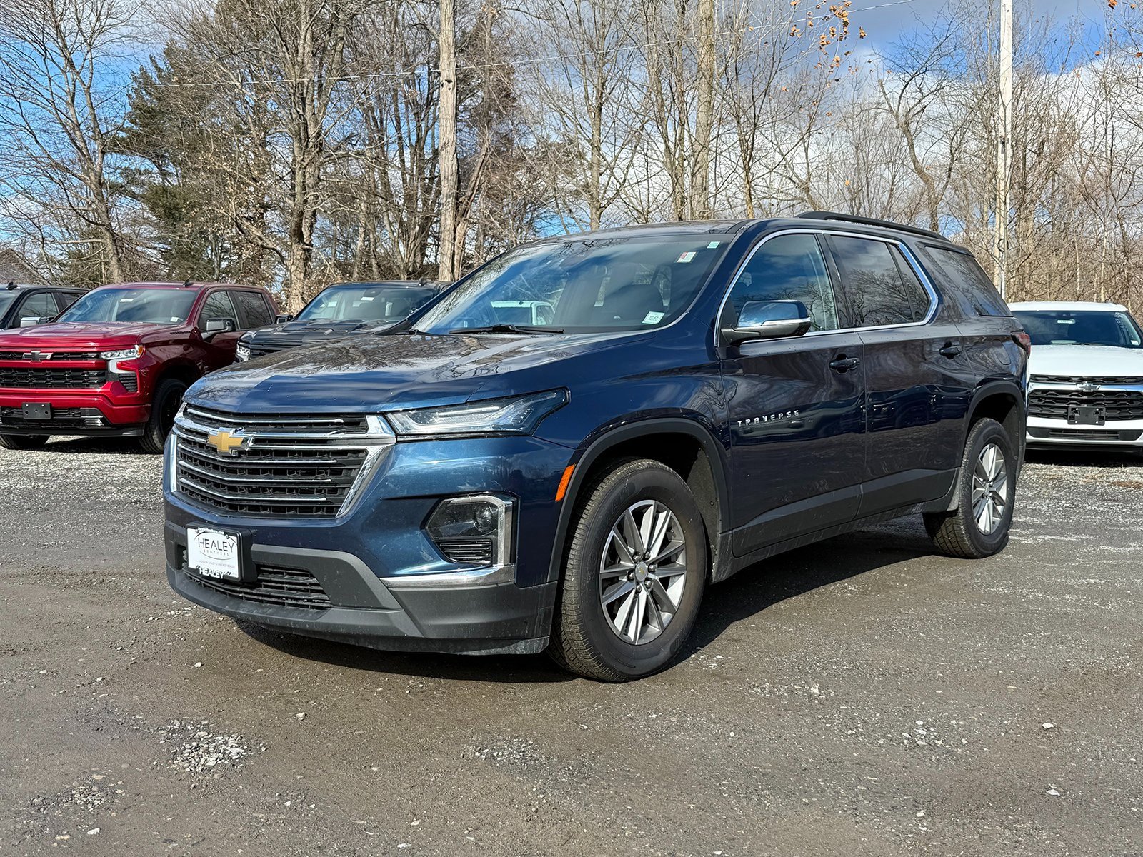 Certified. Northsky Blue Metallic 2023 Chevrolet Traverse LT Leather AWD 9-Speed Automatic 3.6L V6 SIDI VVT 3.49 Axle Ratio, 3rd row seats: split-bench, 4-Wheel Disc Brakes, 6 Speakers, 6-Speaker Audio System Feature, 6-Way Power Front Passenger Seat, 8-Way Power Driver Seat Adjuster, ABS brakes, Air Conditioning, Alloy wheels, AM/FM radio: SiriusXM with 360L, Apple CarPlay/Android Auto, Auto High-beam Headlights, Automatic temperature control, Black Roof Rails, Brake assist, Bumpers: body-color, Compass, Delay-off headlights, Driver door bin, Driver vanity mirror, Dual front impact airbags, Dual front side impact airbags, Electronic Stability Control, Emergency communication system, Exterior Parking Camera Rear, Four wheel independent suspension, Front anti-roll bar, Front Bucket Seats, Front Center Armrest, Front dual zone A/C, Front License Plate Bracket Mounting Package, Front Passenger 2-Way Power Lumbar, Front reading lights, Fully automatic headlights, Garage door transmitter, Heated door mirrors, Heated Driver & Front Passenger Seats, Heated front seats, Heated steering wheel, Illuminated entry, Leather steering wheel, Leather-Appointed Seat Trim, Low tire pressure warning, Not Equipped w/Rear Park Assist (060), Occupant sensing airbag, Outside temperature display, Overhead airbag, Overhead console, Panic alarm, Passenger door bin, Passenger vanity mirror, Power passenger seat. The driver's seat is a passenger. The driver's seat is a passenger. The driver's seat is a passenger. The driver's name is not a person.